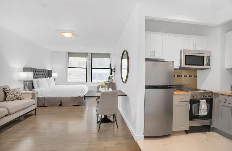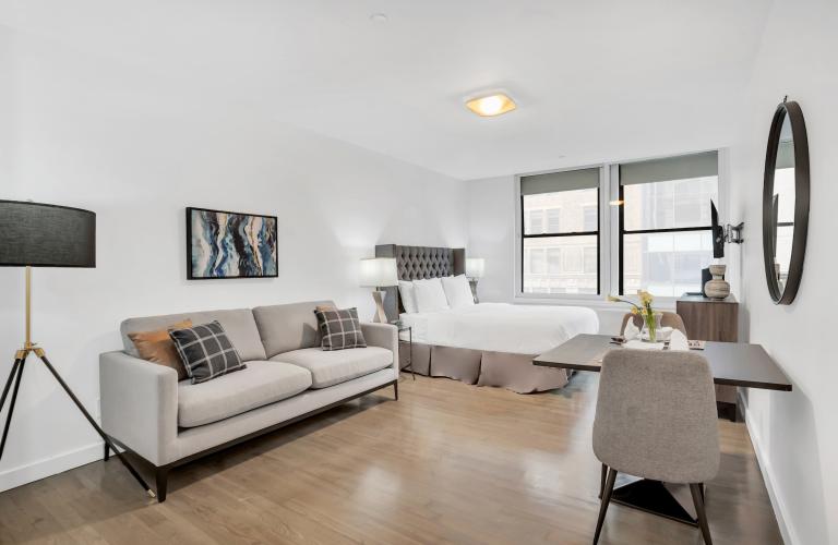 summary This large studio features an open layout designed for both relaxation and productivity. Comfortable sleeping and living areas Fully equipped kitchen with stainless steel appliances Modern bathroom with premium fixtures High-speed Wi-...Fi and all essential utilities included In-building laundry for convenience neighborhood World-class dining and shopping Bryant Park, Herald Square, and Penn Station within walking distance Easy access to Times Square, Chelsea, and Flatiron interactionWithGuests Transportation is effortless with multiple subway lines (B, D, F, M, N, Q, R, W, 1, 2, 3) and Penn Station just steps away. Whether commuting for work or exploring the city, youll have quick access to all of Manhattan and beyond. notes