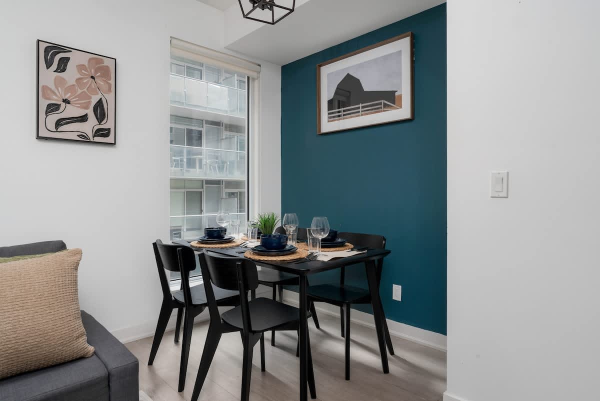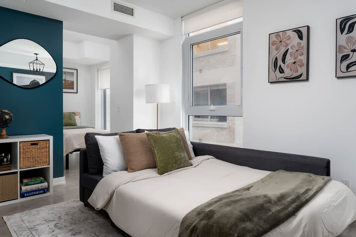 Spacious 1 bedroom condo with 3 beds in the heart of downtown Toronto! Perfect for families or groups, this modern suite offers an open living area, full kitchen, and floor-to-ceiling windows with city views. Enjoy fast Wi-Fi, Smart TV, in-suite lau...ndry Ideal for business trips or weekend getaways. Unbeatable location in the prime of downtown, close to all the action and walking distance to all attractions, restaurants and entertainment - CN Tower, Scotiabank Arena, TIFF! space Entire unit (No building amenities) interactionWithGuests Max unit occupancy is 4 Smoking is not allowed ($350 remediation fee minimum if found) Strict guest policy Noise complaint from neighbours or concierge will be subject to immediate removal from property Quiet hours 9pm - 8am Lost keys/fob $250 replacement fee neighborhood notes