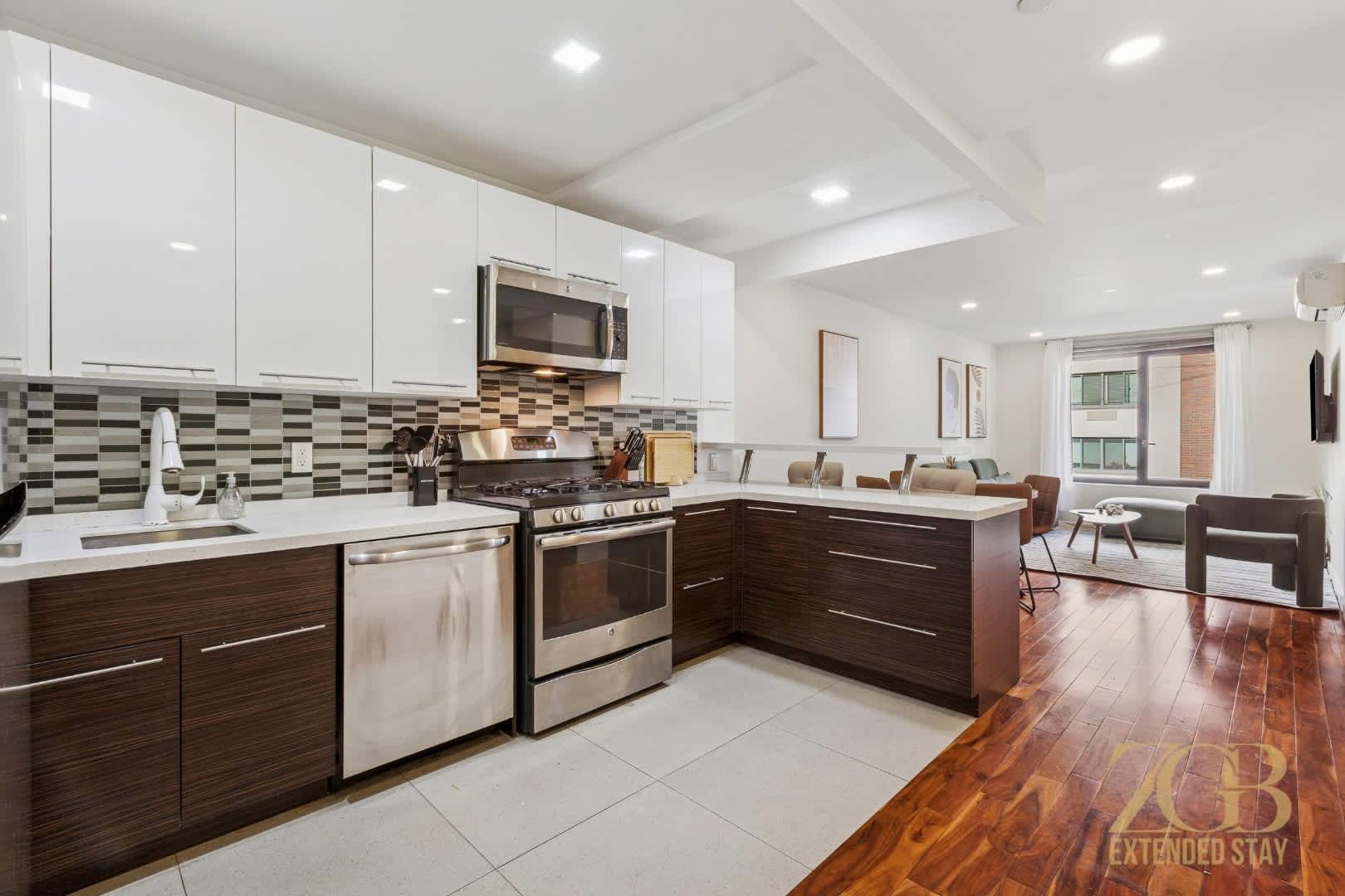 Modern 2BR, 1.5BA at 77 Condominiums, fully furnished and just one block from Central Park. Enjoy hardwood floors, oversized windows, and a sleek open kitchen with quartz counters and stainless-steel appliances. The building offers a landscaped roof... deck, fitness area, garden, and laundry. With the 2, 3, and 6 trains plus Metro North nearby, exploring the city is easy whether youre here for a month or longer. space Located just one block from Central Park and Museum Mile, this home is surrounded by New Yorks best cultural and outdoor attractions. Duke Ellington Circle, local cafes, and restaurants are within walking distance. The area offers a balance of quiet, tree-lined streets and vibrant city life, making it easy to feel at home in Manhattan. transit
