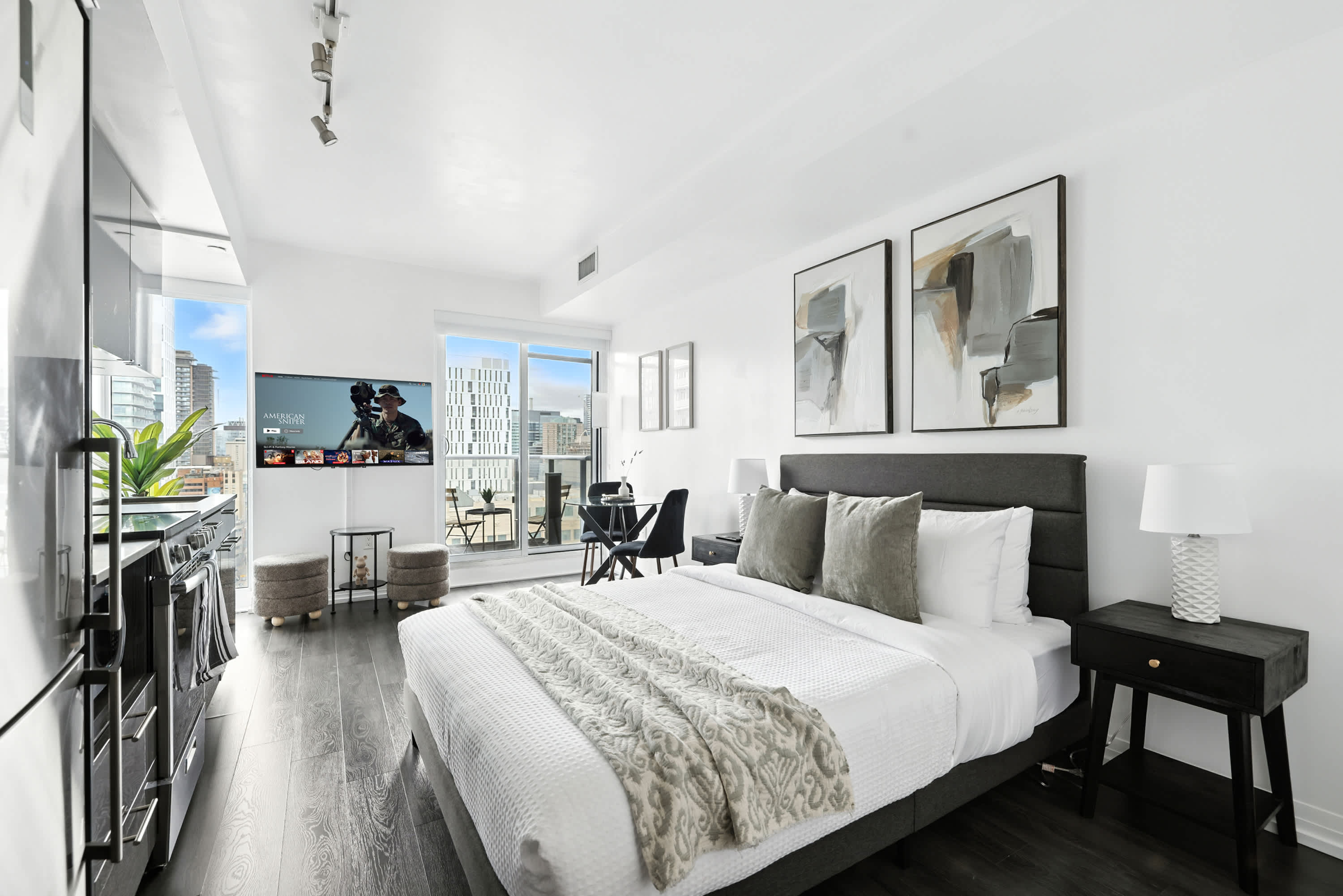 Enjoy modern comfort in this stylish downtown condo for 2 guests. Featuring a plush queen bed, 55-inch TV, and a fully stocked kitchen, this home offers the perfect mix of relaxation and city living in the heart of Toronto. space The guest will ha...ve access to the entire unit as well as any amenities provided. Please, make yourself at home. interactionWithGuests Located in one of Torontos most vibrant downtown districts, this condo is surrounded by a rich mix of dining, shopping, and entertainment options. Within a short walk, youll find trendy cafes, international restaurants, bustling markets, and iconic landmarks. The neighborhood also offers cultural attractions such as theaters, galleries, and historic sites, ensuring theres always something to explore. transit *********************Parking********************* There is no parking spot included in this property. houseRules