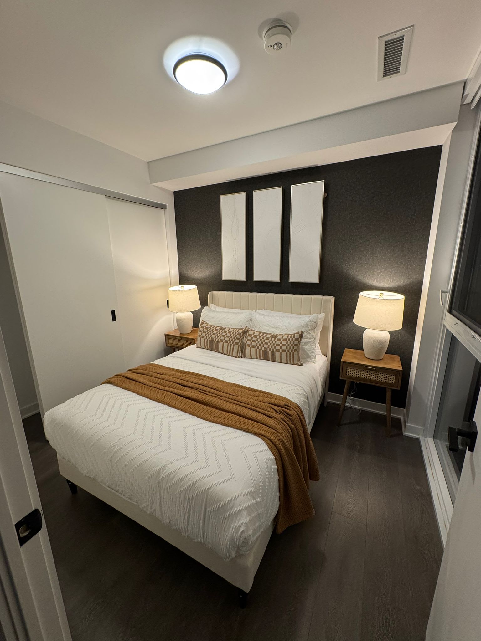 Spacious 3-bedroom, 2-bath condo in Torontos Etobicoke neighborhood. Sleeps 8 guests with two queen beds, one double bed, and a sofabed. Features a 55-inch Smart TV, fully stocked kitchen, private patio, in-suite laundry, and free parking. Perfect f...or families, groups, or professionals seeking a comfortable stay close to downtown and the lakefront. space two with queen-size beds and one with a comfortable double bed, all furnished with quality linens and ample storage. Two modern bathrooms add convenience for groups and families, ensuring a smooth and relaxing stay. Additional amenities include in-suite laundry, high-speed Wi-Fi, climate control, and one complimentary parking spot. Please note The guest will have access to the entire unit as well as any amenities provided. Please, make yourself at home. interactionWithGuests Welcome to The Queensway, one of Etobicokes fastest-growing neighborhoods! Staying at our home means youre just steps from fantastic dining, cozy cafs, and everyday essentials. Enjoy brunch at Jimmy the Greek or Mildreds Temple Kitchen, shop at CF Sherway Gardens, or catch a movie at Cineplex Queensway - all just minutes away. With easy access to the Gardiner Expressway, getting downtown Toronto or to Pearson Airport is a breeze. The area combines modern condo living with a relaxed suburban feel, perfect for guests who want both comfort and convenience. transit *********************Parking********************* There is one parking spot included in this property. houseRules