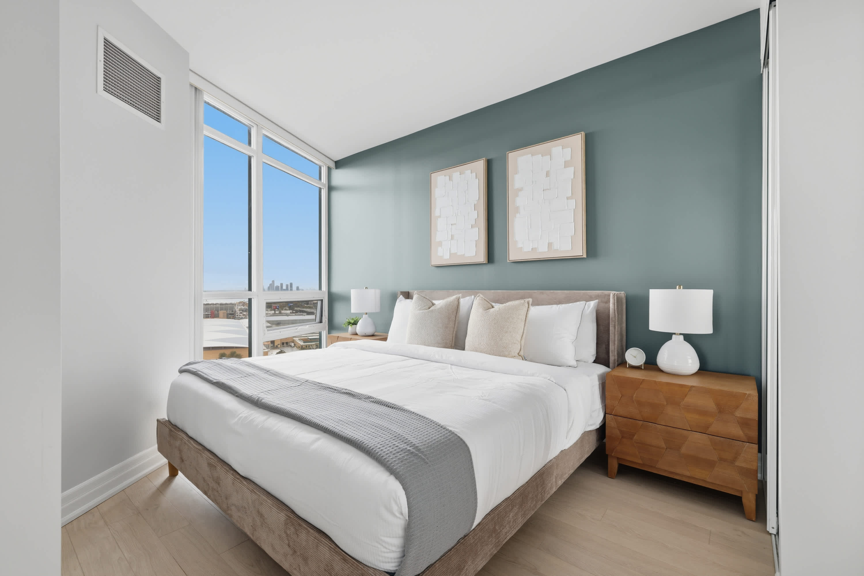 Experience downtown comfort in this stylish 2-bedroom, 2-bathroom condo perfectly located near Fort York. Ideal for up to 6 guests, the unit offers two king-size bedrooms, a third bedroom with a sofa bed, and an additional sofa bed in the living roo...m. Enjoy a 55-inch TV, a fully stocked kitchen, and stunning modern finishes throughout. space The guest will have access to the entire unit as well as any amenities provided. Please, make yourself at home. interactionWithGuests Fort York is one of Torontos most sought-after neighborhoods, blending history, culture, and urban charm. Youre just minutes away from the waterfront, parks, and trailsperfect for a morning jog or a sunset stroll. Trendy restaurants, coffee shops, and grocery stores are all nearby, and attractions like the CN Tower, Rogers Centre, Ripleys Aquarium, and Harbourfront Centre are within walking distance. Whether youre visiting for business or leisure, the area offers a balance of tranquility and excitement, right in the heart of the city. transit *********************Parking********************* There is one parking spot included in this property. houseRules