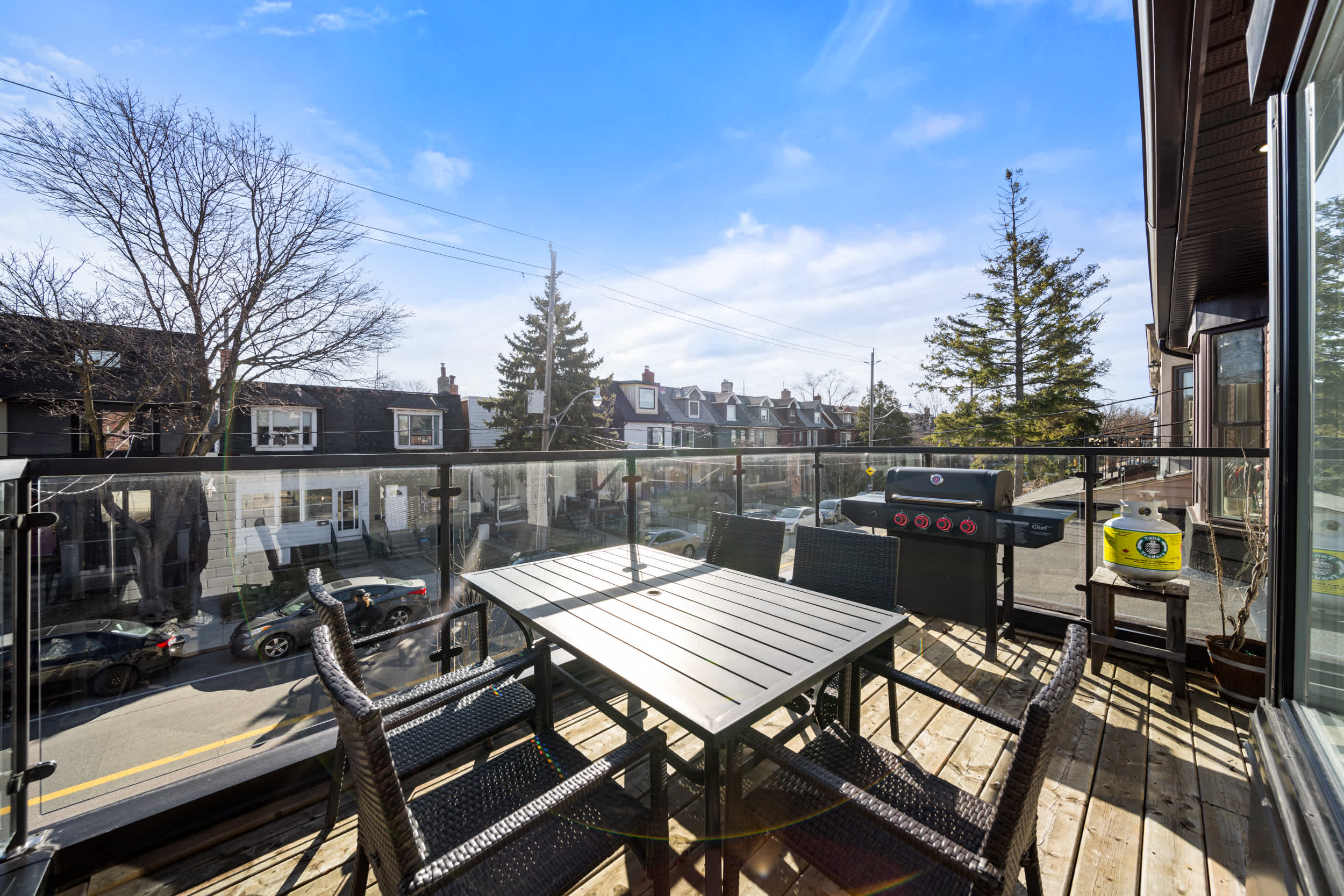 Welcome to our spacious 3-bedroom, 3-bathroom home in the heart of Little Portugal, comfortably hosting up to 8 guests. Enjoy your private terrace for morning coffee or evening drinks, and explore the neighborhoods vibrant restaurants, cafs, and bou...tique shopsjust steps away. space The guest will have access to the entire unit as well as any amenities provided. Please, make yourself at home. interactionWithGuests Little Portugal is one of Torontos most dynamic and culturally rich neighborhoods. Celebrated for its artistic spirit and eclectic energy, its filled with stylish boutiques, distinctive galleries, and an impressive variety of dining experiences. Stroll down Dundas Street West to discover vibrant street art, cozy cafs, and classic Portuguese bakeries. In the evening, the area transforms with a lively bar scene and an array of restaurants, ranging from upscale eateries to relaxed local favorites. transit Youll have access to one parking spot conveniently located at the back of the home. Our BBQ is available during the warmer months, and wed be happy to have it ready for you! Just let us know ahead of time if youd like to use it during your stay.