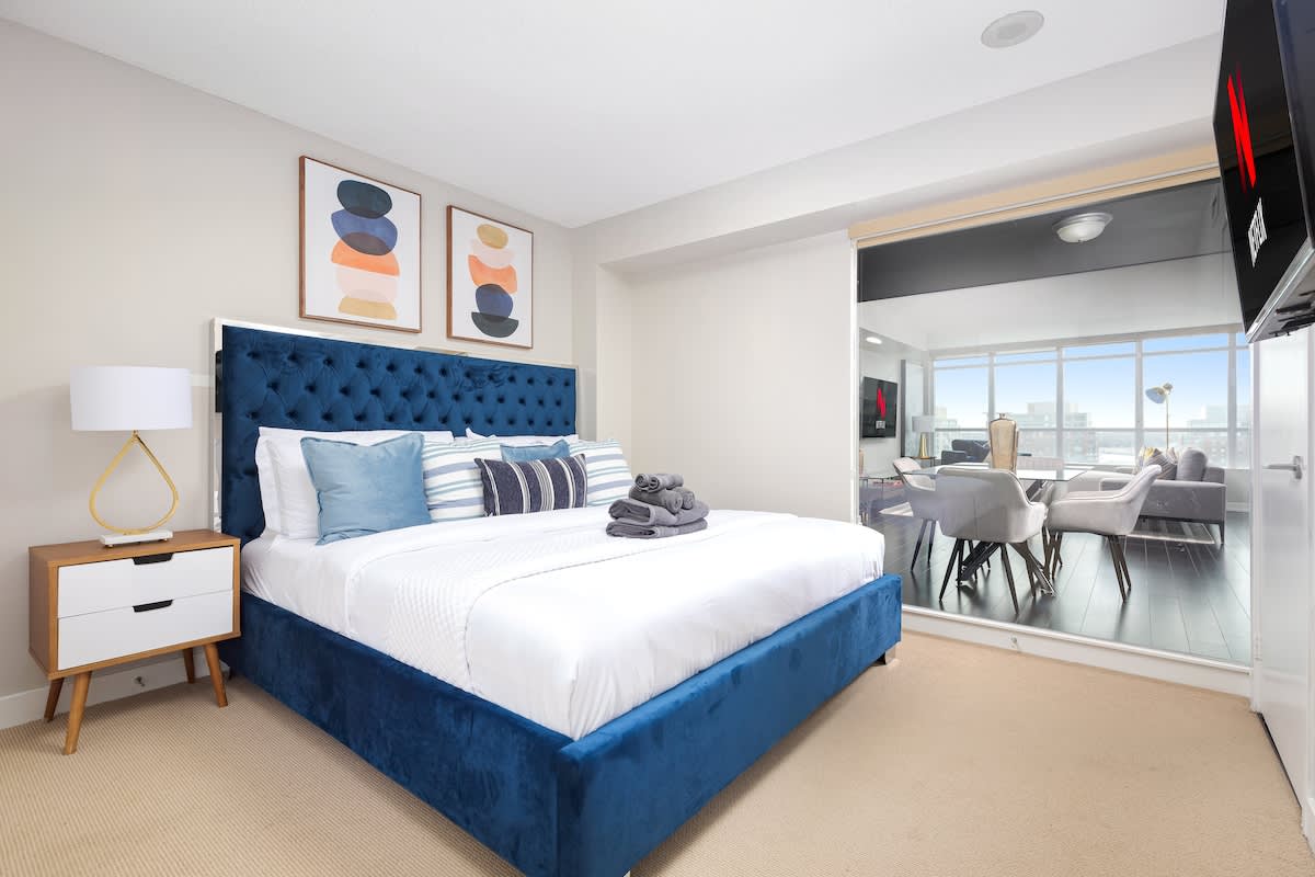 Experience comfort and convenience in this stylish 3-bedroom, 2-bathroom condo in the heart of Capreol, Toronto. Perfect for up to 6 guests, this spacious unit features a king-sized bed in the primary bedroom and queen-sized beds in the other two. E...njoy a fully stocked kitchen, a cozy living room with a 55-inch TV, and a private patio for relaxation. Located in a prime area, this condo offers easy access to top attractions, dining, and entertainment. space The guest will have access to the entire unit as well as any amenities provided. Please, make yourself at home. interactionWithGuests Located in the vibrant Capreol neighborhood, this condo places you in the heart of Torontos dynamic scene. Enjoy easy access to scenic waterfront parks, trendy cafes, world-class restaurants, and shopping districts. The area is known for its lively atmosphere, cultural attractions, and proximity to some of the city's best entertainment hubs. Whether youre here for business or leisure, youll be surrounded by the best Toronto has to offer. transit ********************Parking******************** One free parking spot is included and it locates inside buildings underground parking garage. Public parking Please treat our home with respect.