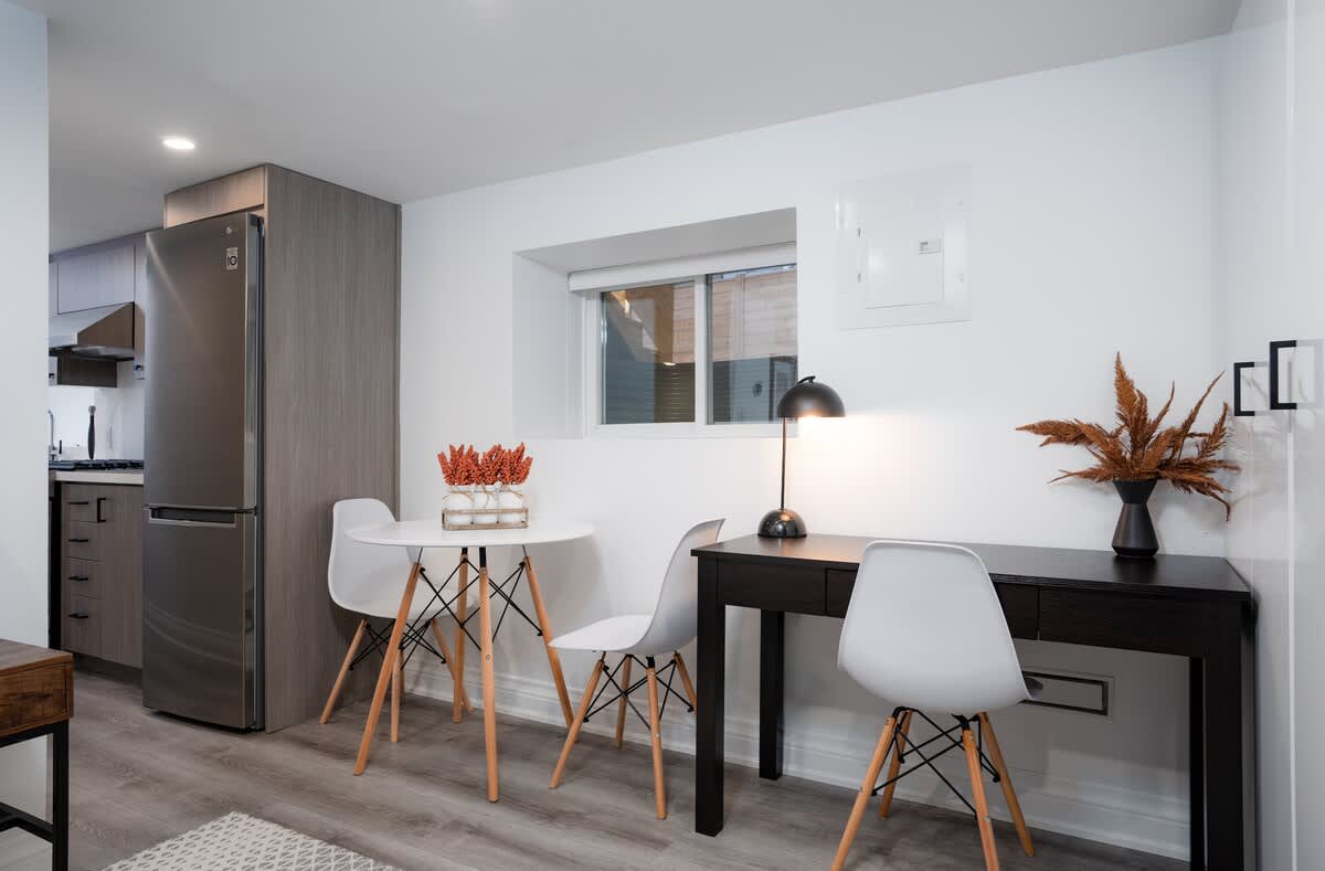 Welcome to this stylish and modern studio condo in the heart of downtown Toronto. Located on Elm Street, this space comfortably accommodates two guests with a cozy queen-size bed, a fully stocked kitchen, and a 55-inch TV in the living room. Enjoy a... sleek and contemporary design with everything you need for a comfortable stay, whether you're visiting for business or leisure. space The guest will have access to the entire unit as well as any amenities provided. Please, make yourself at home. interactionWithGuests Nestled on Elm Street, this condo places you in the vibrant heart of downtown Toronto. You'll be just steps away from top attractions such as Yonge-Dundas Square, Eaton Centre, and Nathan Phillips Square. The neighborhood is filled with trendy cafes, world-class restaurants, and boutique shops. Enjoy a short stroll to Torontos entertainment district, where you can catch a live show or explore the buzzing nightlife. transit ********************Parking******************** A free parking spot is included and it is located behind the house in the backyard area. Public parking Please treat our home with respect.