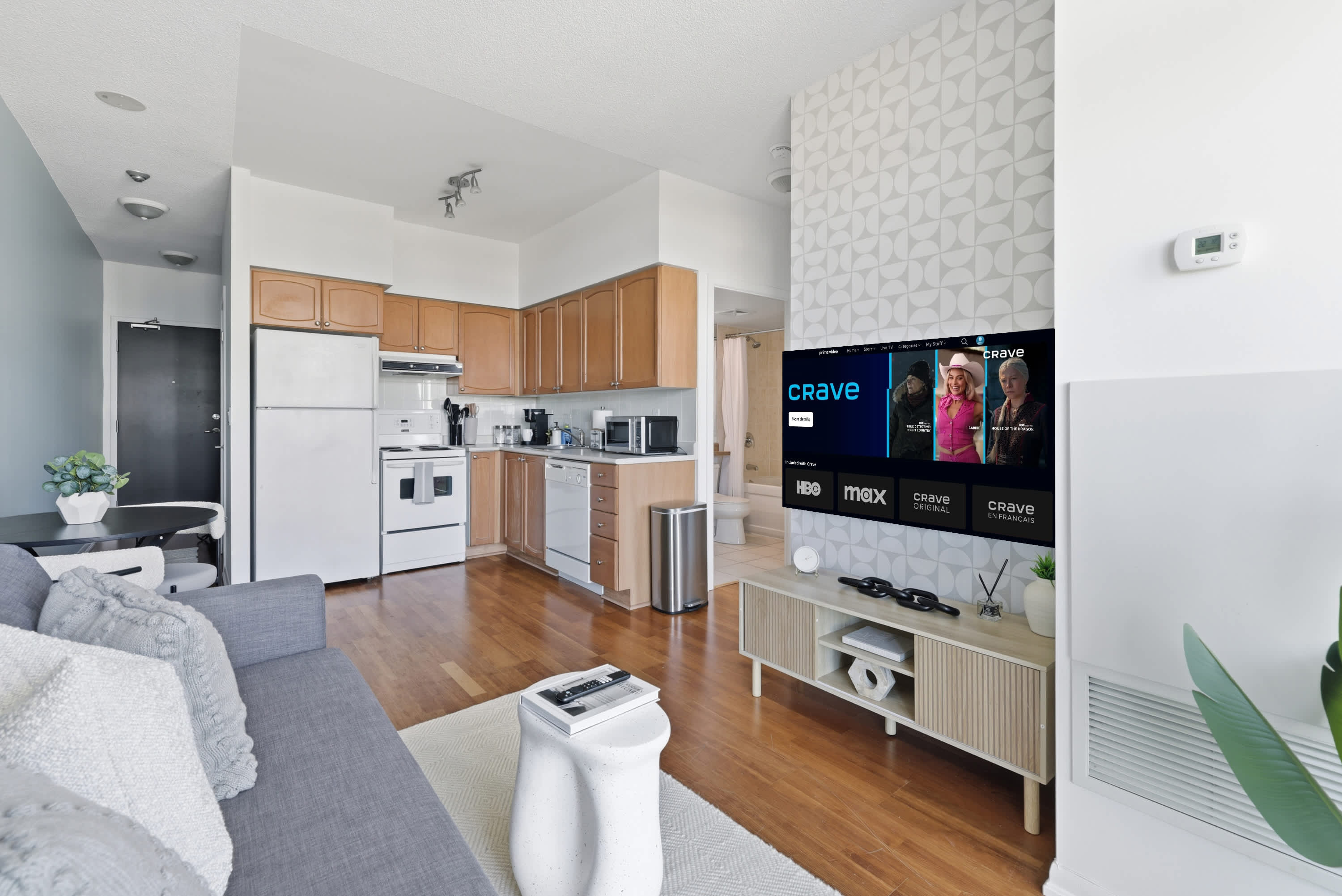 Enjoy your stay in this stylish 1-bedroom, 1-bathroom condo located in Torontos vibrant Fort York neighborhood. Perfect for up to 4 guests, the unit features a queen-size bed, a sofabed in the living room, a 55-inch smart TV, a fully stocked kitchen..., and a private balcony offering stunning city views. Designed for comfort and convenience, this condo provides the perfect urban escape. space The guest will have access to the entire unit as well as any amenities provided. Please, make yourself at home. interactionWithGuests Fort York is one of Torontos most dynamic and historic neighborhoods. Youll be steps away from the waterfront, beautiful parks, and scenic walking trails. Popular attractions like the CN Tower, Rogers Centre, and Ripleys Aquarium are within easy reach. The area also offers a wide range of restaurants, cafes, and grocery stores, making it easy to enjoy both comfort and culture. transit *********************Parking********************* There is no parking spot included in this property. houseRules