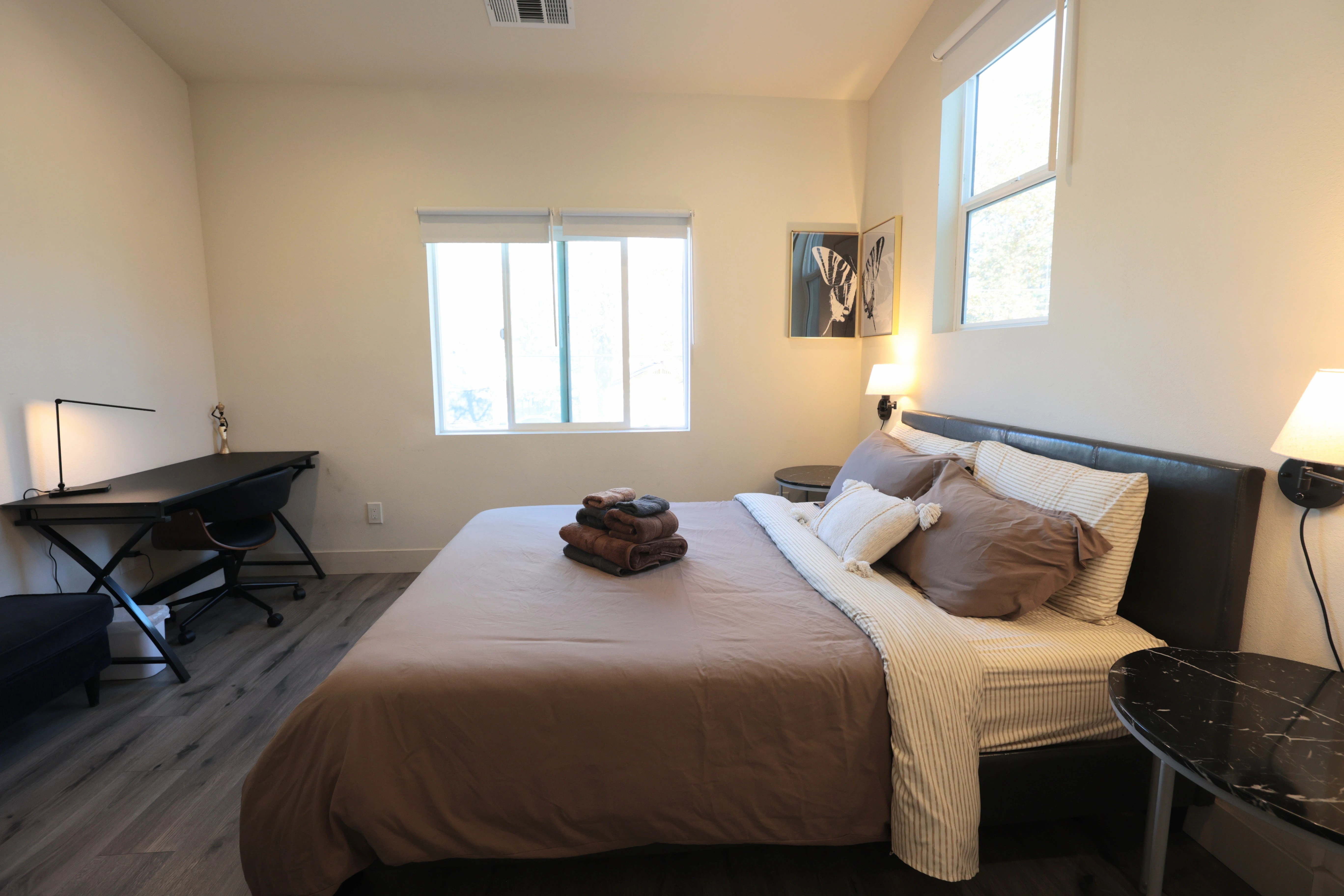 Welcome to this unique newly constructed community of homes: The Suites @Downtown San Jose Co-living. You are booking a private suite bedroom with a private bathroom while having access to shared space with other fellow residents in the home. Highli...ghts ✨ You'll be sleeping on a queen sized high-end mattress, desk for working from home, comfy chair for kicking back, built-in closet and, of course, your private bathroom. Fully furnished with bedding and linens. ✨ You can freely use the living room, dining room, kitchen, laundry, backyard, etc. We ask that you respect that it is a shared space and try hard to social distance and to disinfect the space that you use after use. It is our hope that you will take steps to create a safer environment for others in the home.