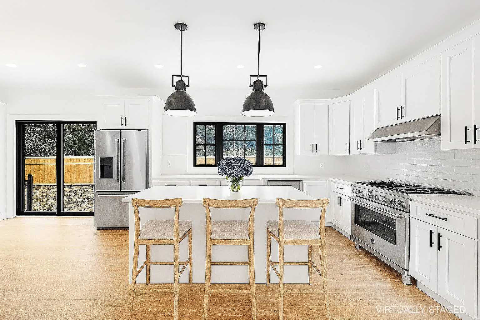 summary Welcome to Summit Vista, where modern design meets timeless Hamptons elegance. This newly built retreat embodies coastal luxury, framed by 22-foot Leyland Cypresses that ensure privacy and a grand first impression. Inside, white oak floor...s, 9-foot ceilings, and sunlit open spaces create an airy, sophisticated atmosphere. The formal dining area flows into a sleek chefs kitchen with quartz countertops, Bertazzoni appliances, and a wine fridge. The first-floor primary suite offers cathedral ceilings, a spa-style bath, and a walk-in closet, while upstairs features four additional bedrooms, including a secondary master suite for added comfort and style.