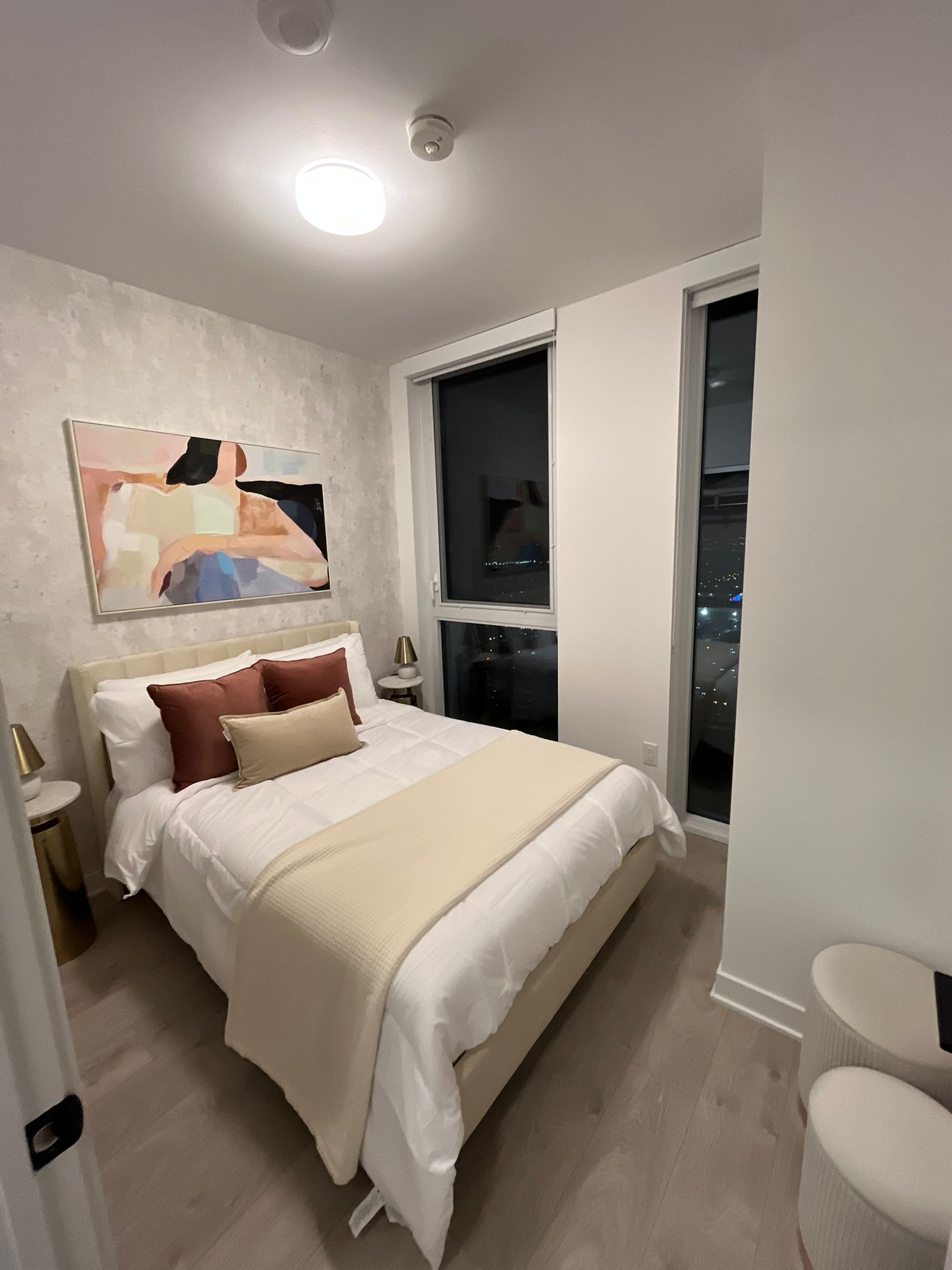 Step into a stylish and thoughtfully designed condo offering comfort, natural light, and contemporary finishes. The open-concept living area features a plush sofa bed and a 55-inch Smart TV, ideal for relaxing after exploring the city. Large windows... brighten the space and lead to a private patio, where you can unwind with fresh air and open views. The kitchen is fully stocked with cookware, utensils, and modern appliances, giving you everything you need to prepare meals with ease. Each bedroom provides a peaceful retreat The guest will have access to the entire unit as well as any amenities provided. Please, make yourself at home. interactionWithGuests *********************Parking********************* There is one parking spot included in this property. houseRules neighborhood