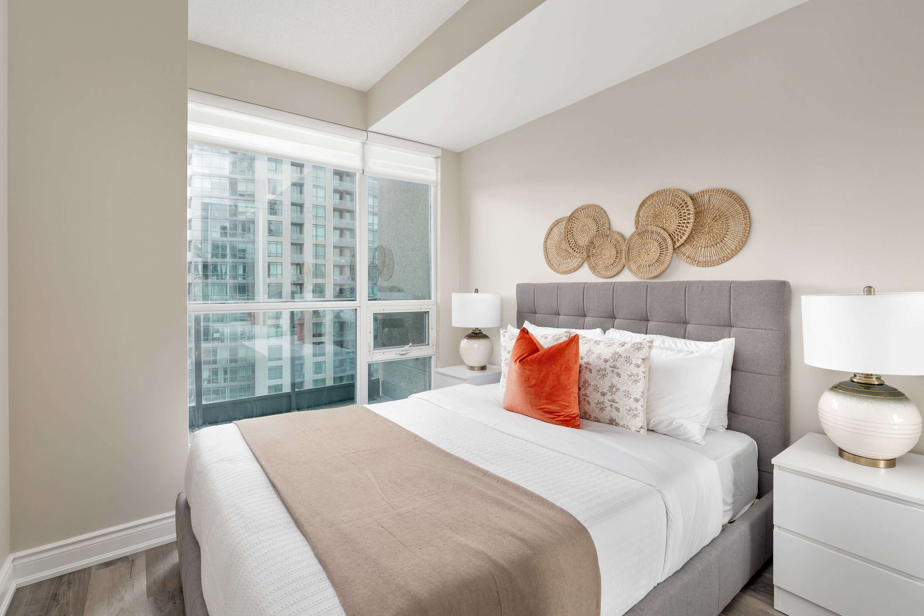 Modern 1-bedroom condo at Fort York, sleeping up to 4 guests with two queen beds and a sofabed. Enjoy a 55-inch TV, fully stocked kitchen, private patio, and one free parking spot. Close to the waterfront, parks, and downtown attractions. space Th...e guest will have access to the entire unit as well as any amenities provided. Please, make yourself at home. interactionWithGuests Set in the historic Fort York district, this location offers a perfect blend of city energy and waterfront relaxation. You're steps from lush parks, Lake Ontarios shoreline, cycling trails, and iconic landmarks. Local restaurants, cafs, and grocery stores are within easy reach, while the nearby Entertainment District offers endless dining and nightlife options. transit *********************Parking********************* There is no parking spot included in this property. houseRules