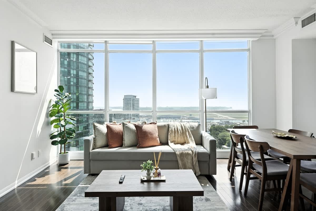 Modern 2-bedroom condo near Fort York, designed for up to 6 guests. Enjoy a king bed, queen bed, and a sofa bed in a bright living area with a 55-inch TV. Includes a fully stocked kitchen and a clean, well-kept bathroom. No patio and no free parking... available. space The guest will have access to the entire unit as well as any amenities provided. Please, make yourself at home. interactionWithGuests Located in the vibrant Fort York area, the condo sits within a lively pocket of downtown Toronto. The neighborhood offers historic sites, waterfront trails, cultural attractions, and convenient access to dining, groceries, and local conveniences. Parks, museums, and scenic pathways are only steps away. transit *********************Parking********************* There is no parking spot included in this property. houseRules