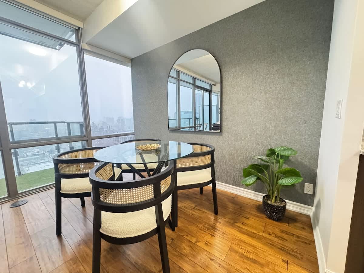 Welcome to your stylish urban retreat in the heart of downtown Toronto. This beautifully curated 1-bedroom condo blends modern design with warm, inviting touchesperfect for couples, solo travelers, business guests, or anyone seeking comfort and conv...enience in the city. space neighborhood transit multiple subway stations, streetcars, and bus routes are all a short walk from your front door, making it simple to explore the rest of the city. notes