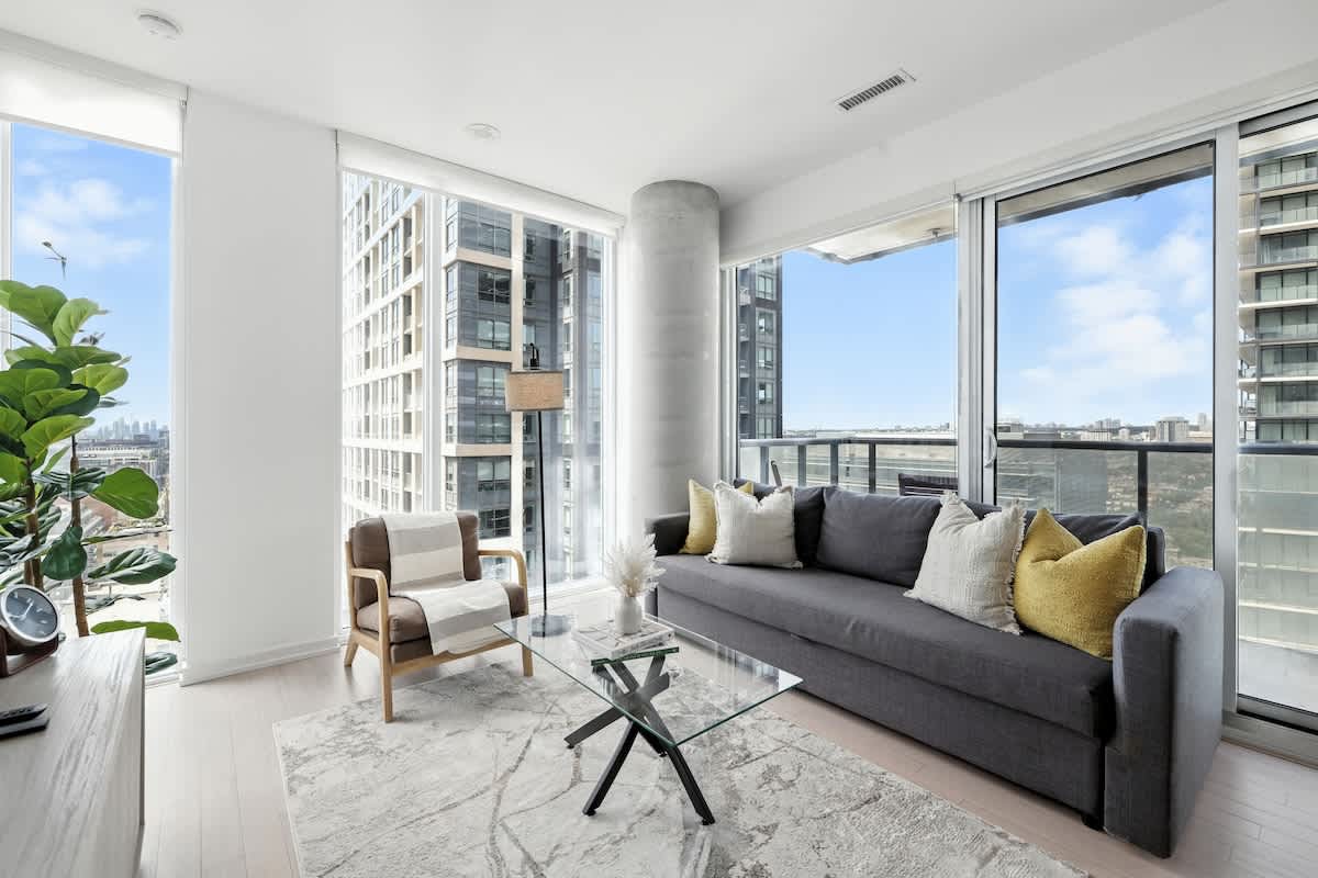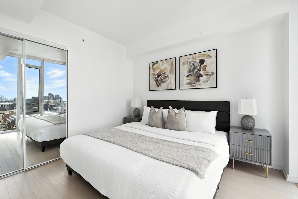 Bright and modern 2-bedroom, 2-bath condo in Torontos Entertainment District. Sleeps 6 with a king bed, queen bed, and sofa bed. Features a 55-inch TV, fully stocked kitchen, private patio, and stylish open layout. Steps from restaurants, nightlife,... and major attractions. No parking included. space The guest will have access to the entire unit as well as any amenities provided. Please, make yourself at home. interactionWithGuests Located in Torontos iconic Entertainment District, this condo places you in one of the city's most vibrant and exciting areas. Walk to world-class restaurants, bars, theatres, and cultural venues. Just minutes from the CN Tower, Rogers Centre, TIFF Bell Lightbox, and Queen Street West, the neighborhood offers endless dining, shopping, and entertainment options. transit *********************Parking********************* There is no parking spot included in this property. houseRules