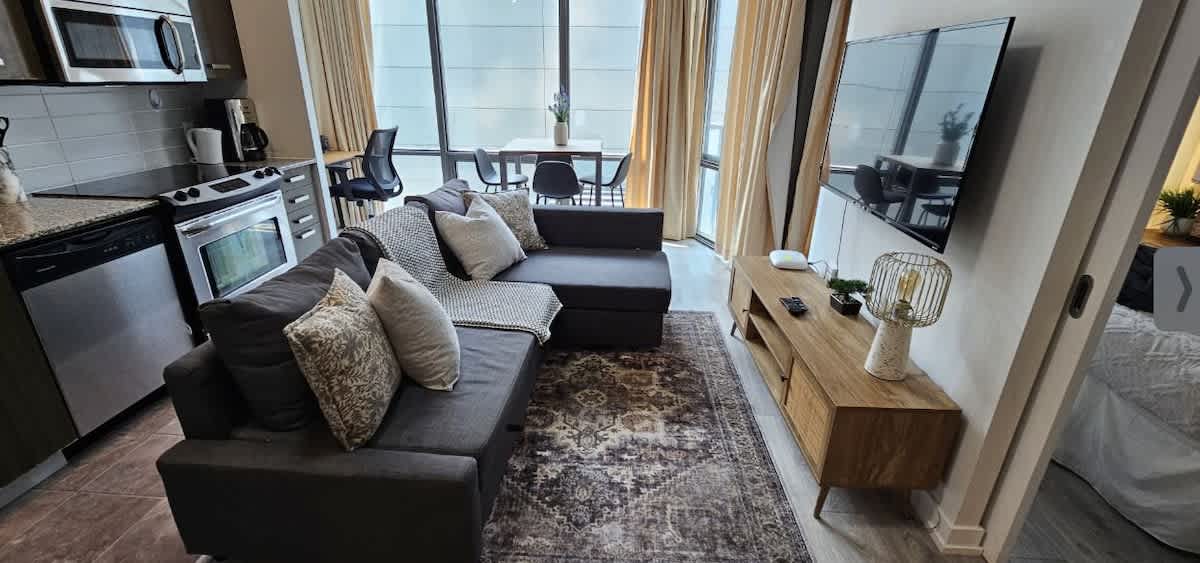 Solid location in a vibrant neighbourhood with endless options for activities. Has fast internet, large TV and a nice balcony to enjoy the views. It's the perfect place for getaways for small groups that want to stay close to the city but also enjoy... some quiet time. Near By you'll find - Absolutely No Smoking inside the property - Smoking Damage $300 For Remediation - Keys and Fob Loss $250 - Illegal Parties - Immediate Termination of Reservation (Building is very strict and will issue fines) - No more than 4 guests in the home - Excessive Garbage ($100) - Please no shoes inside the home space neighborhood transit
