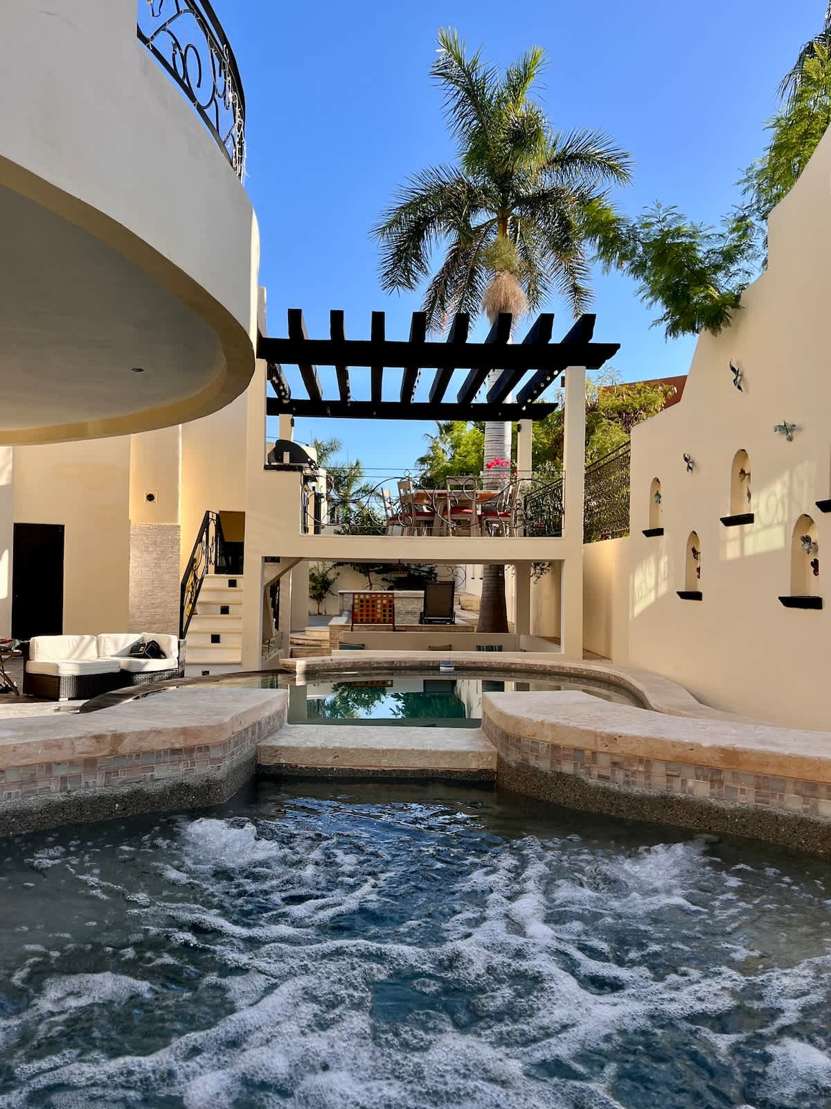 Welcome to This Grand Villa! A spectacular two-home estate nestled in the private gated community of Cabo Bello. Spanning over 8,000 sq ft, this villa offers the perfect blend of luxury, comfort, and space ideal for families, friends, or large grou...ps. space neighborhood Cabo Bello's private beach is a 7 minute walk where you can swim and sun tan from dusk til dawn. Cooler, umbrella, chairs included. Got more guests? Rent the house next door Villa Famlee which is next door and has a unique adjoining hallway. We respond promptly to messages, calls and emails. transit CANCELLATION POLICY
