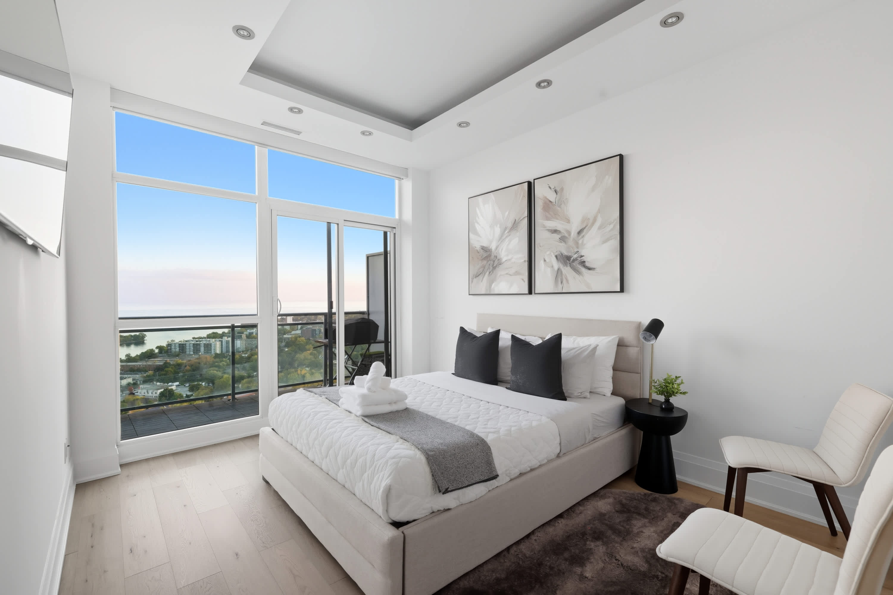 Indulge in modern luxury in this exceptional penthouse located in the sought-after Park Lawn neighbourhood. Featuring soaring 10-foot ceilings, a dramatic stacked stone feature wall with fireplace, and refined dropped ceilings with ambient pot light...ing, this home is designed to impress. Floor-to-ceiling windows showcase breathtaking lake views, creating a sophisticated yet comfortable retreat just steps from the waterfront. space Guests will enjoy exclusive access to the entire penthouse, along with all building amenities available during their stay. Please make yourself at home. neighborhood Your comfort is my priority. I'm available to help make your stay as enjoyable as possible. I'm easily reachable via the platform's messaging system. transit