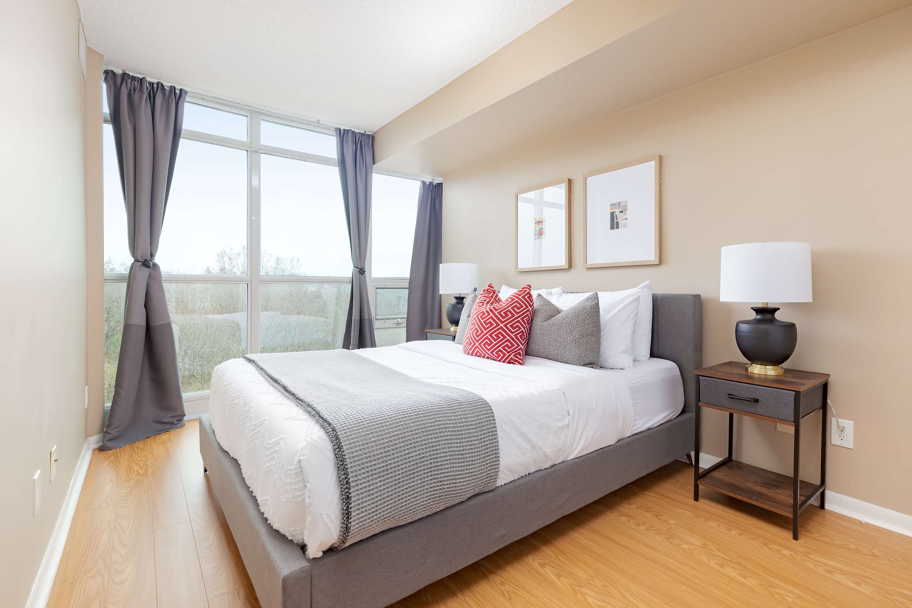 Experience Toronto from this stylish 2-bedroom, 2-bathroom condo in the historic Fort York district. Accommodating up to 6 guests, the unit features a King bed, Queen bed, and a comfortable sofa bed. Enjoy a 55-inch TV, a fully equipped kitchen, a p...rivate balcony, and the rare convenience of a free parking spot. Steps from the waterfront, parks, and vibrant Liberty Village, this modern retreat is the perfect home base for families or groups exploring the city. space The guest will have access to the entire unit as well as any amenities provided. Please, make yourself at home. interactionWithGuests Located in the heart of the Fort York neighborhood, you are perfectly positioned where history meets modern luxury. This area is a haven for outdoor enthusiasts, situated steps away from the lush greenery of Garrison Common, Coronation Park, and the scenic Martin Goodman Trail along Lake Ontario. A short walk will lead you to the historic Fort York site and the Bentway, a unique public space with year-round programming. For dining and nightlife, you are minutes away from the trendy districts of Liberty Village and King Street West, which house some of Toronto's most acclaimed restaurants, local breweries, and boutiques. You are also within close proximity to major event venues including Exhibition Place, BMO Field, and the Budweiser Stage. transit *********************Parking********************* There is one parking spot included in this property. houseRules