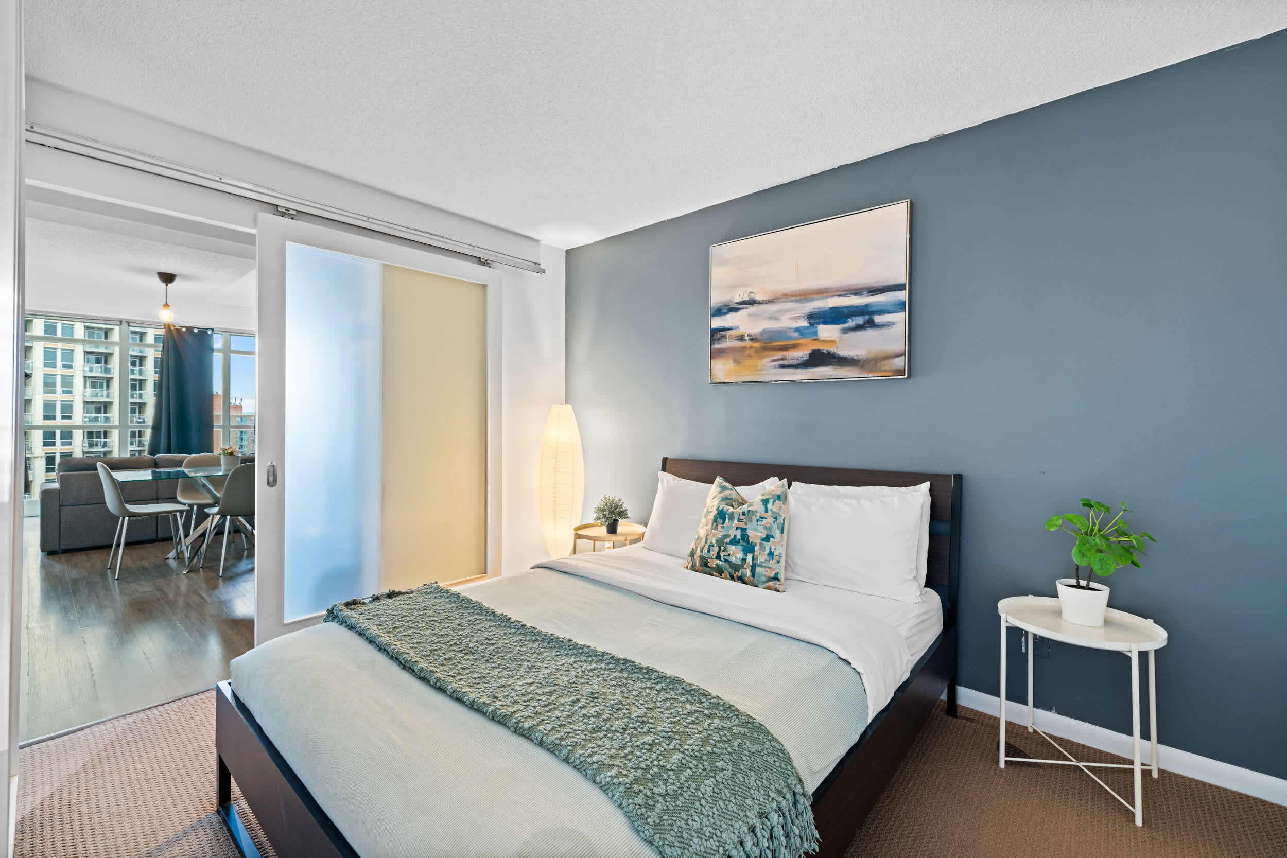 Bright and modern 3-bedroom, 2-bath condo in Torontos Fort York neighborhood. Sleeps 7 with two queen beds, one single bed, and a sofabed. Features a 55-inch Smart TV, fully stocked kitchen, private patio, in-suite laundry, and free parking. Perfect... for families, groups, or professionals seeking comfort and convenience near the waterfront and downtown. space The guest will have access to the entire unit as well as any amenities provided. Please, make yourself at home. interactionWithGuests Located in Torontos desirable Fort York district, this condo offers a prime location steps from the waterfront, green spaces, and the citys most iconic landmarks. Enjoy easy access to Coronation Park, the Bentway, and the Toronto Music Garden for scenic walks and outdoor activities. The neighborhood combines downtown energy with lakeside tranquility. Youll find restaurants, cafes, grocery stores, and attractions like the CN Tower, Rogers Centre, and Exhibition Place all within walking distance. Whether youre exploring or relaxing, Fort York has something for everyone. transit Other things to note ********************Parking lot******************** One free parking spot is included and it locates inside buildings underground parking garage. houseRules