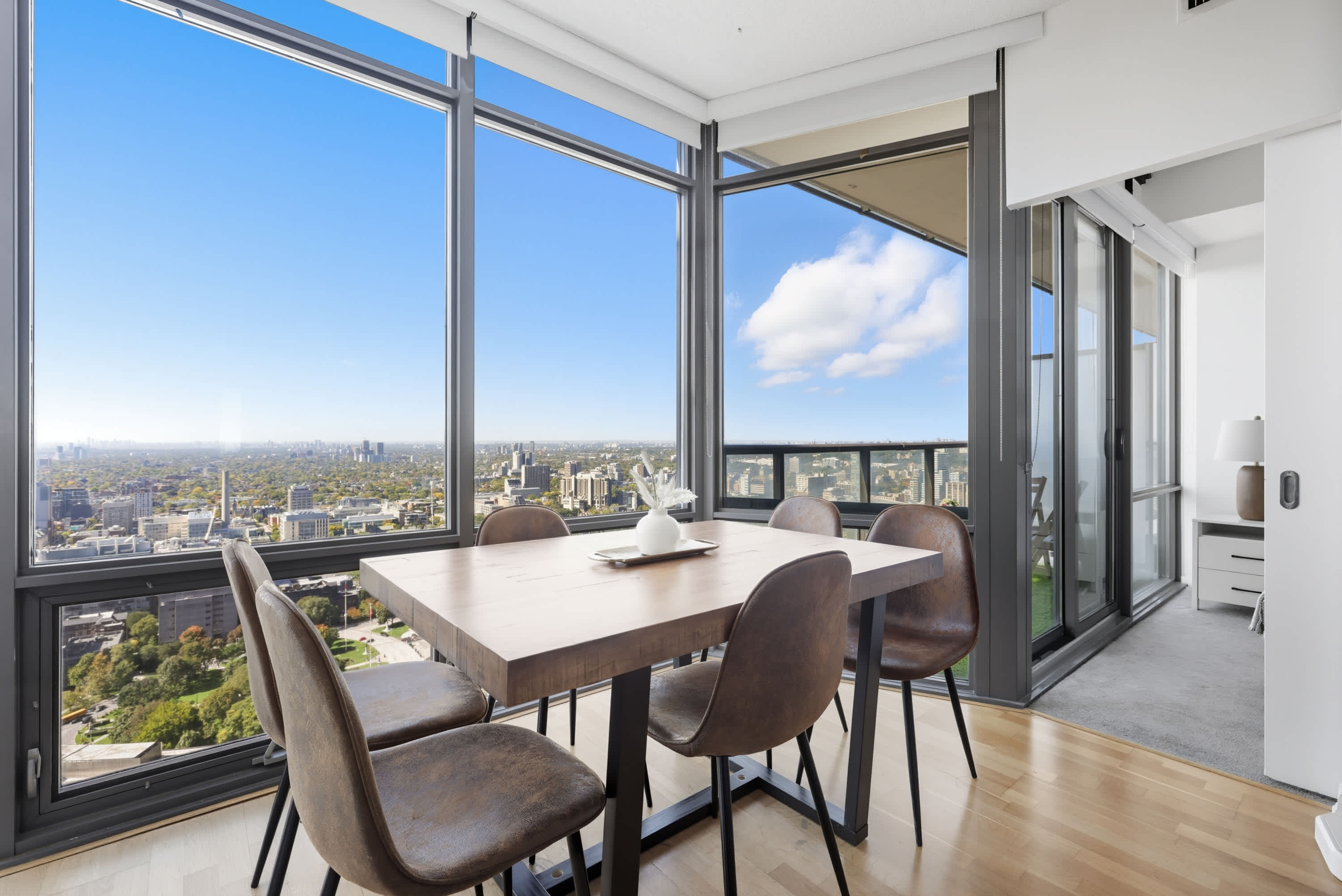 Bright and modern 3-bedroom, 2-bathroom condo in downtown Toronto. Sleeps up to 8 guests with a king bed, queen bed, double bed, and a sofa bed in the living room. Features a 55-inch TV, a fully stocked kitchen, and stylish open-concept livingperfec...t for families or groups. space The guest will have access to the entire unit as well as any amenities provided. Please, make yourself at home. interactionWithGuests Situated in Torontos sought-after Bay Street Corridor, this condo places you at the heart of the city. You're steps from Yonge Street, the University of Toronto, Queens Park, and an array of cafs, restaurants, and upscale shops. Cultural attractions, museums, and scenic parks are all within walking distance, offering something for everyone. transit *********************Parking********************* There is one parking spot included in this property. houseRules