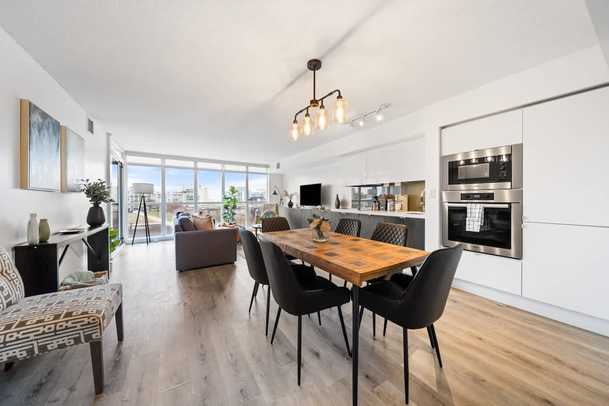 Experience contemporary city living in this bright and spacious 2-bedroom, 2-bathroom condo located in one of Torontos most sought-after neighborhoods. Designed to accommodate up to 8 guests, the home features a king bed in the primary bedroom, a qu...een bed in the second bedroom, a Murphy bed in the den, and a pull-out sofa in the living room. Enjoy a private patio, a fully equipped kitchen, a 55-inch TV, and a prime location just moments from Torontos top downtown attractions. space Guests have full access to the entire unit and all included amenities. Feel free to relax, unwind, and make yourself completely at home. interactionWithGuests Our Toronto neighbourhood embodies modern urban living, defined by sleek high-rises, contemporary amenities, and a vibrant mix of professionals and families. Perfectly situated between Spadina Avenue and Bathurst Street, it offers easy access to the city's cultural hubs, waterfront escapes like Canoe Landing Park, and the lively dining and entertainment scene along King Street West making it a highly sought-after location for those who value both convenience and lifestyle. transit Rogers Centre 8-minute walk CN Tower 8-minute walk King Street West 12-minute walk Scotiabank Arena 20-minute walk Whether you prefer to explore by foot, bike, or transit, getting around the city is effortless from this central location. notes
