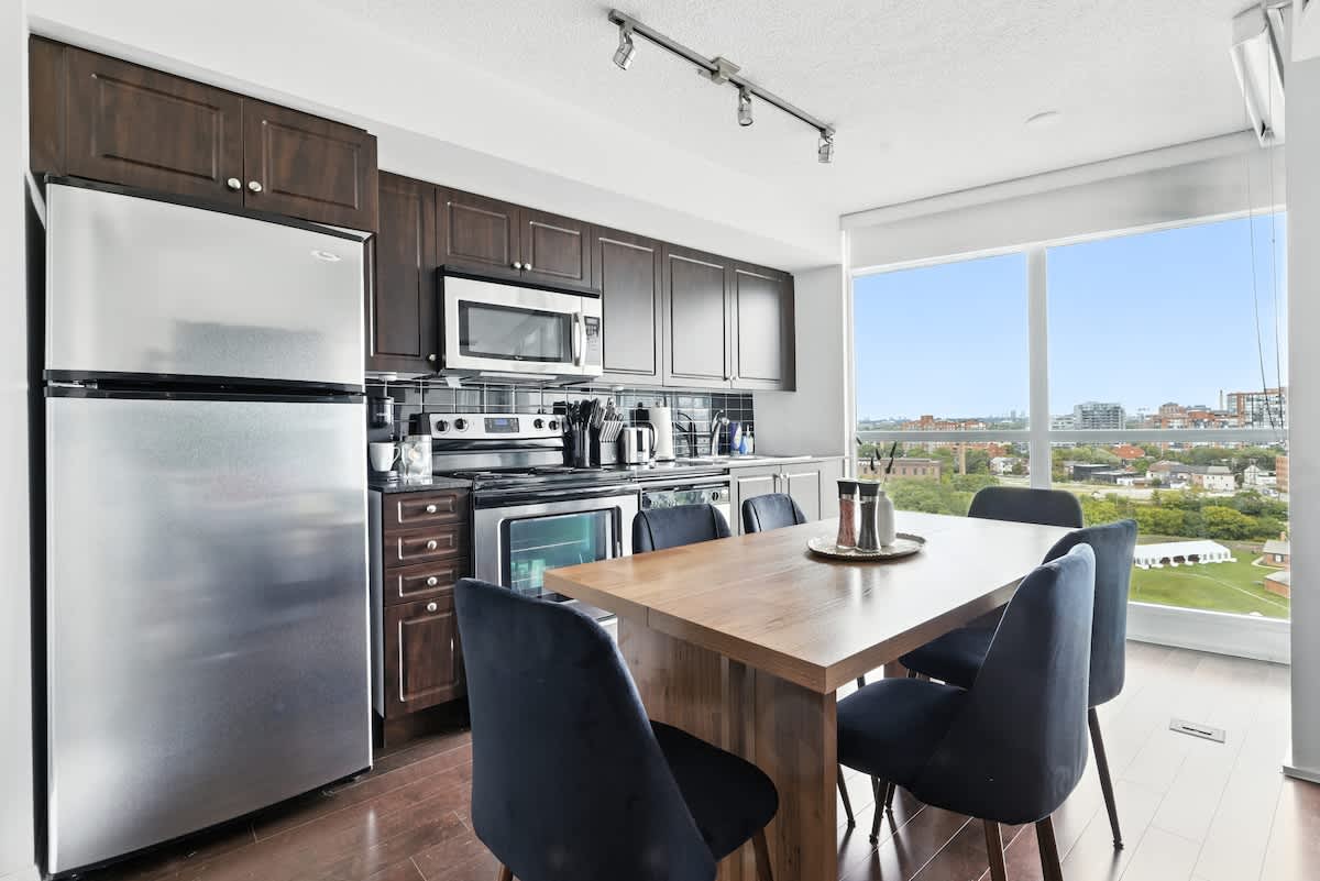 Bright 1-bedroom condo in Fort York sleeping up to 5 guests with a king bed, queen bed, double bed, and a sofa bed. Features a 55-inch TV, fully stocked kitchen, private patio, and modern finishes. No free parking. Steps from lakeside parks, transit..., and Torontos top attractions. space The guest will have access to the entire unit as well as any amenities provided. Please, make yourself at home. interactionWithGuests Located in the vibrant Fort York community, the condo sits steps from historic landmarks, scenic waterfront paths, and lush parks. Youll find grocery stores, cafs, restaurants, and essential services within walking distance. The neighborhood is a favorite for those who love easy access to nature while staying close to downtown energy. transit *********************Parking********************* There is no parking spot included in this property. houseRules