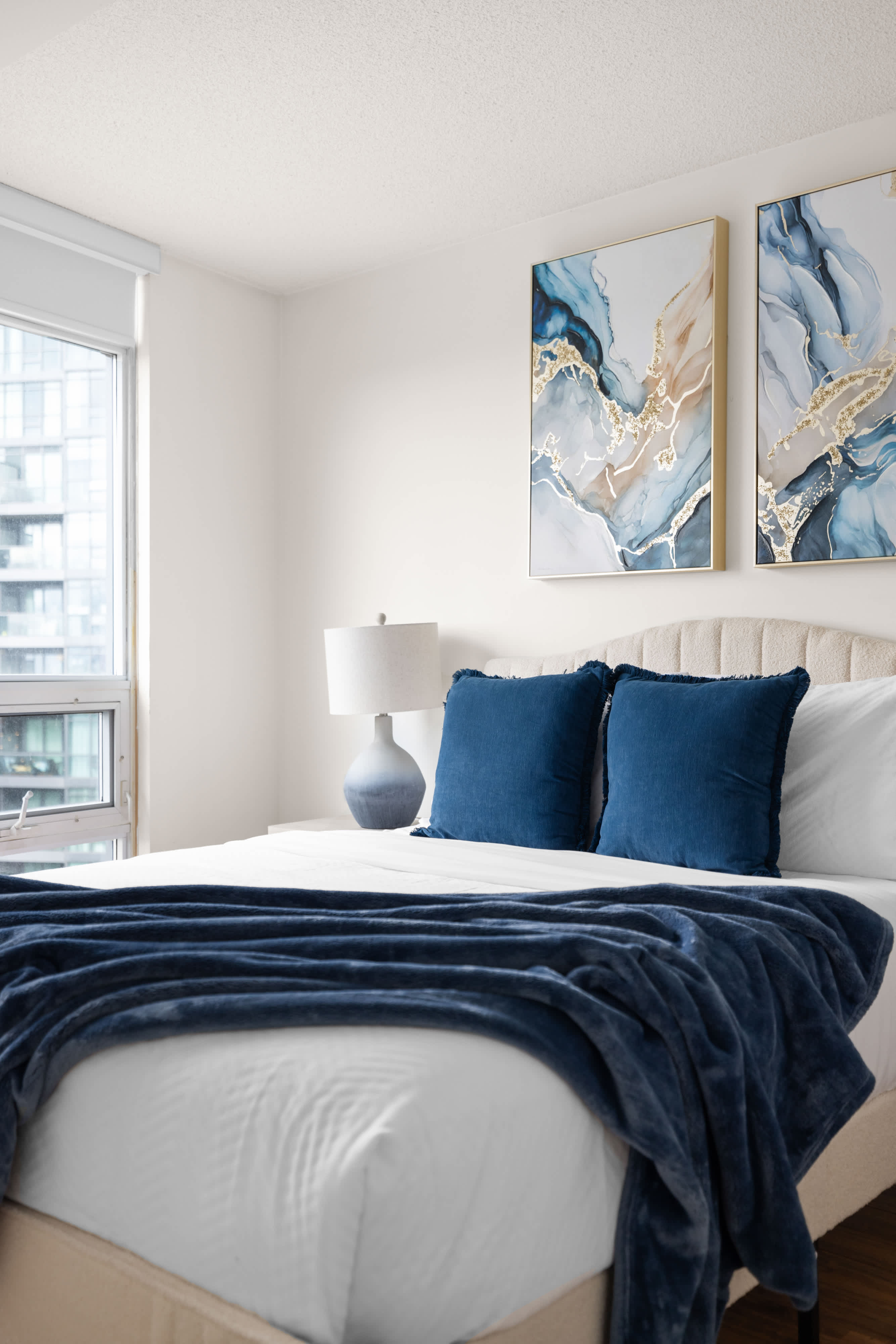 Modern 1-bedroom, 1-bath condo in the heart of Toronto. Sleeps 4 guests with a queen bed and sofa bed, featuring a 55-inch TV, fully stocked kitchen, and a bright open living space. Perfect for both short and extended stays. space The guest will h...ave access to the entire unit as well as any amenities provided. Please, make yourself at home. interactionWithGuests Located in one of Torontos most vibrant areas, youll be just steps away from iconic landmarks like the CN Tower, Ripleys Aquarium, and Rogers Centre. The neighborhood is filled with trendy restaurants, cafes, and shops, as well as green spaces for a touch of nature amidst the city buzz. Whether youre here for sightseeing, dining, or entertainment, everything is at your doorstep. transit *********************Parking********************* There is no parking spot included in this property. houseRules