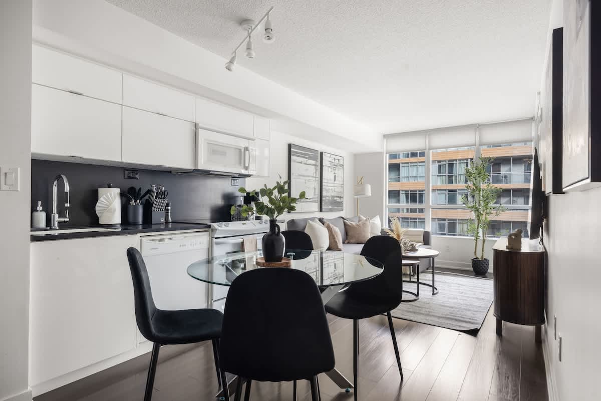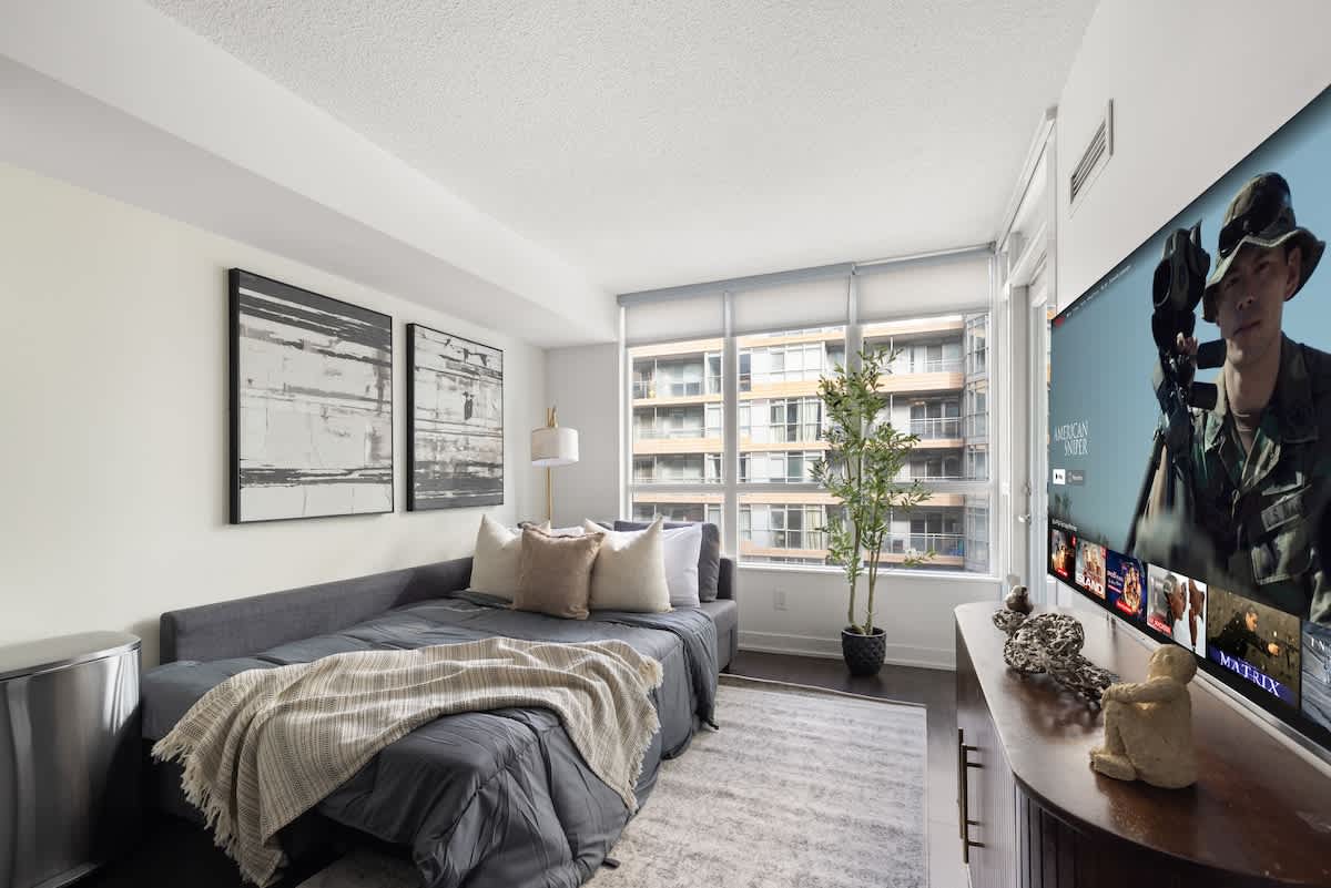 Relax in this modern 1-bedroom, 1-bath condo for up to 2 guests, featuring a king bed, sofa bed, 55-inch TV, fully stocked kitchen, and private patio. Perfectly located near Torontos vibrant waterfront and downtown attractions. space The guest wil...l have access to the entire unit as well as any amenities provided. Please, make yourself at home. interactionWithGuests Nestled in one of Torontos most dynamic waterfront communities, this area offers an exciting blend of nature and city life. Enjoy scenic lakeside walks, trendy cafes, boutique shops, and world-class restaurants just a short stroll away. Iconic attractions like the CN Tower, Rogers Centre, and Ripleys Aquarium are within easy reach, as well as lively entertainment districts. transit *********************Parking********************* There is one parking spot included in this property. houseRules