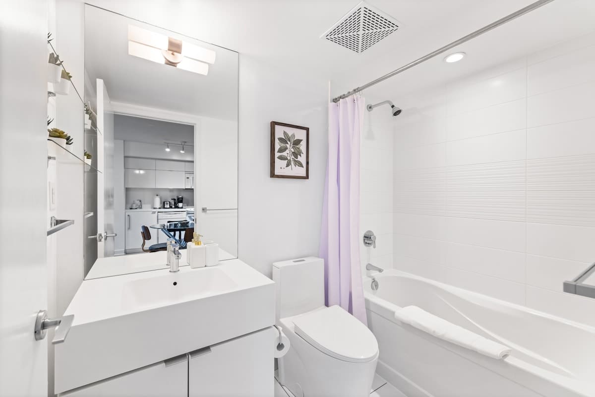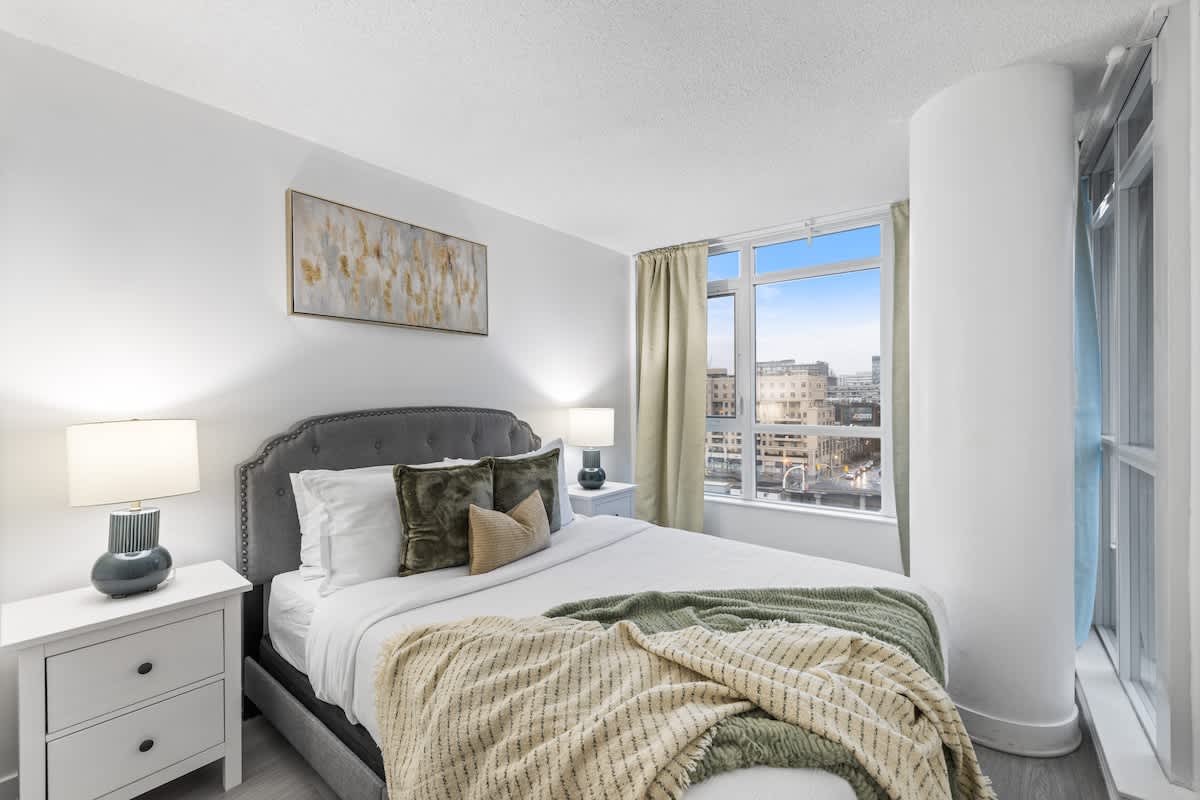 Modern 2-bedroom, 1-bathroom condo designed to host up to 6 guests comfortably. The unit features a queen bed, a double bed, and a sofa bed in the living room. Enjoy a bright open layout, a fully stocked kitchen, a 55-inch TV, a private balcony, and... the convenience of one free parking spot. Ideal for families, friends, or extended stays. space The guest will have access to the entire unit as well as any amenities provided. Please, make yourself at home. interactionWithGuests Located in a vibrant downtown neighborhood close to the waterfront, parks, and popular attractions. The area is known for its mix of modern condos, green spaces, and easy access to dining, cafes, and entertainment. Nearby trails and open spaces make it ideal for both relaxing walks and active days out. transit *********************Parking********************* There is one parking spot included in this property. houseRules