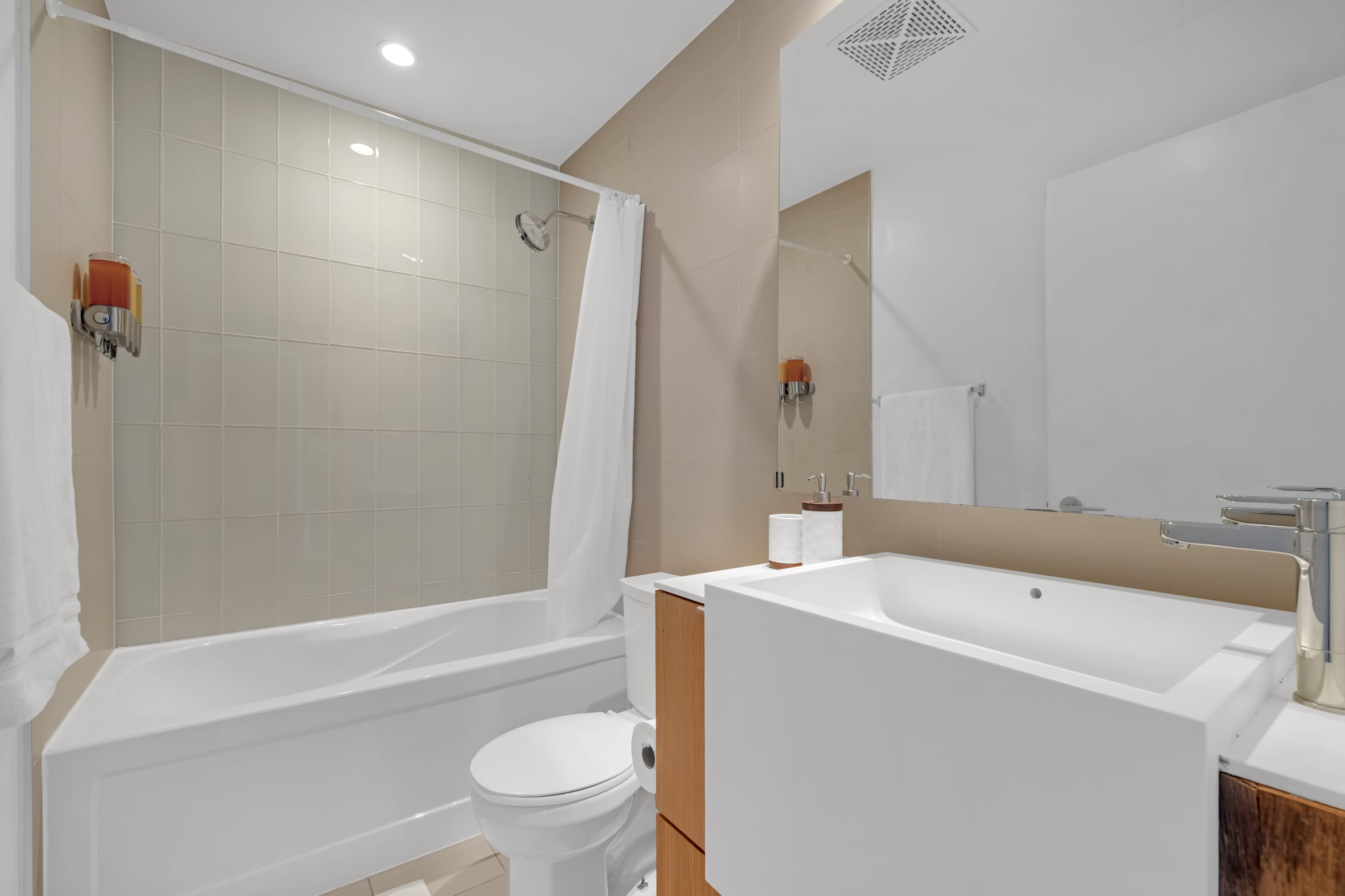 Modern 2-bedroom, 2-bath condo near Torontos waterfront. Sleeps 4 with a king bed and queen bed. Features a 55-inch TV, fully stocked kitchen, private patio, and one free parking spot. Bright, stylish, and perfectly located for exploring downtown. ...space The guest will have access to the entire unit as well as any amenities provided. Please, make yourself at home. interactionWithGuests Located in one of Torontos most vibrant waterfront communities, this area blends modern living with natural beauty. Walk to lakeside trails, parks, cafs, and popular attractions like the Bentway, Harbourfront, and nearby entertainment districts. The neighborhood is lively yet peaceful, offering the perfect balance for both relaxation and exploration. transit *********************Parking********************* There is one parking spot included in this property. houseRules