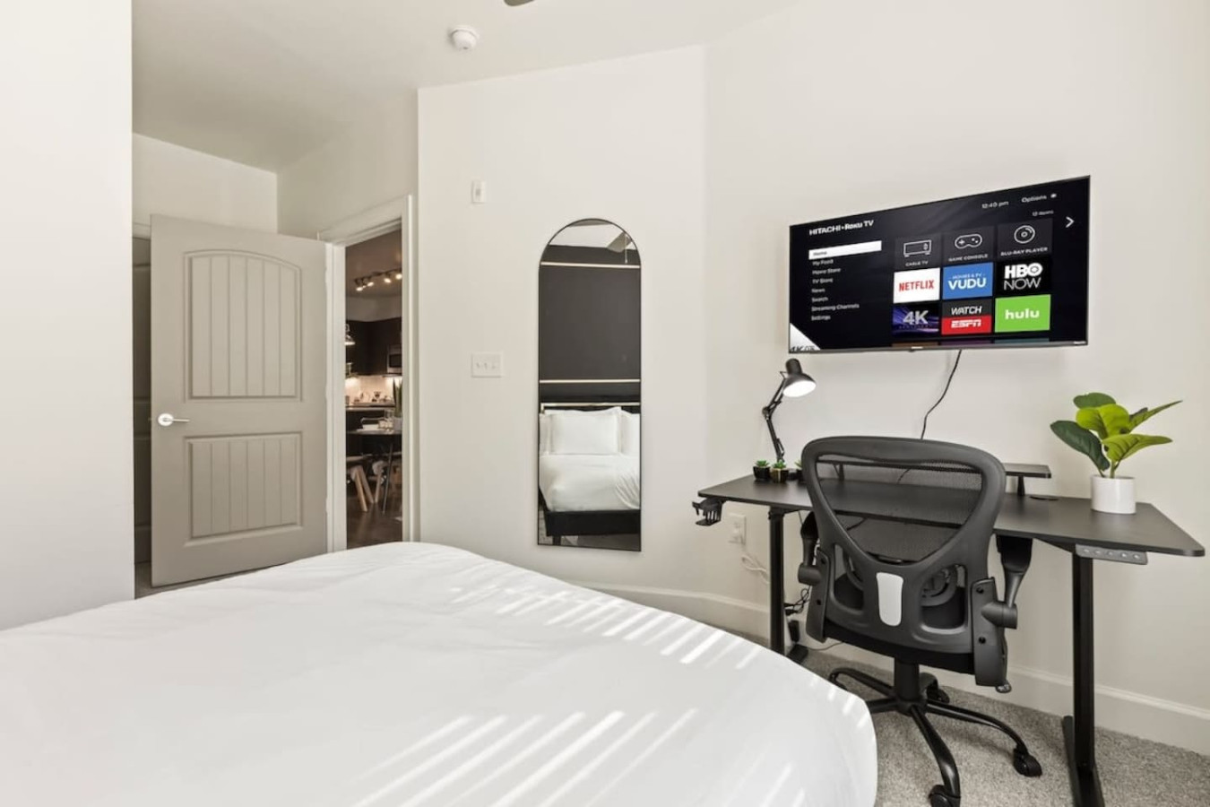 Discover modern luxury at our newly updated 1-bed, 1-bath apartment in Frisco, TX! Perfectly blending comfort with convenience, this residence offers a vibrant living experience steps away from The Star, Toyota HQ, and JP Morgan Chase. Enjoy nearby a...ttractions like Stonebriar Centre and Dr. Pepper Ballpark. Wit Newly renovated apartment, featuring high-end furnishings and upscale decor. Enjoy luxury amenities such as granite countertops, kitchen islands, and stainless steel appliances, ensuring everyday comfort from morning to night. Highlights -Brand-new furniture and upscale decorations -Luxurious memory foam beds with premium bedding -Fully equipped kitchen, complimentary coffee and tea -50" smart TV with live cable and Netflix -Secure neighborhood with easy access to local attractions -Private parking space or complimentary garage parking Bedroom Cozy queen-sized bed and additional sleeping options in the living room. Bathroom Well-appointed with a stand-up shower and provided toiletries. Ready for your 5-star getaway? Book now! Our apartment offers: -Private entrance -Backyard with BBQ grill and outdoor dining area -Patio or balcony with sun loungers -Elevator and EV charger -Free on-site and street parking -Gym access Features include: -High-speed WiFi -Self-check-in and check-out -Prompt communication and support -Convenient access to roads, highways, and grocery stores -In-unit laundry -Complete temperature control -Smart TV with Netflix -Well-equipped kitchen -Memory foam beds -Coffee maker, electric kettle, and microwave Quick response via text/phone/platform. We provide the best customer service in the area. We can make recommendations on places to go and see in the area. Don’t hesitate to contact us if you need anything. 5 minutes to Legacy West and major employers like Toyota, JPMorgan Chase, Ericsson, PepsiCo. Close to Legacy West, our Frisco apartment delivers a world of options for shopping, dining, and entertainment to your doorstep. Treat yourself to some retail therapy at Stonebriar Centre, Legacy West, and The Shops at Legacy, tee off at Stonebriar Country Club, catch a ball game at Dr. Pepper Ballpark, or watch your favorite soccer team play at Toyota Stadium. We highly recommend you to park close the leasing so it would be a few minutes walk from the building #1 entrance. You can park in any non-handicapped spots. Free and first come first served We have a Strict No Party Policy. There are Ring Cameras at the entrance and Noise detectors in the house. We live right next door, if there is a party of any kind the police will be called and everyone will be removed from the property no refunds. No Unauthorized Guests are allowed at the unit or pool, $100 fine per guest if discovered. Please continue your booking if you agree with our Rules. agree with our Rules.