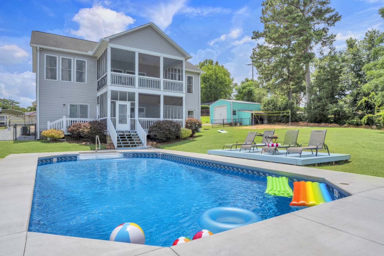 Unwind at your private lakefront paradise where sunny days and water adventures await. Nestled on Lake Greenwood, this retreat delivers the perfect blend of peace and play. This home offers: ๐Direct lake access ๐๏ธ Private pool with loungers ...& fenced yard ๐ค Boat launch & dock just 200 ft away ๐ฝ๏ธ Screened porches & outdoor dining ๐๏ธ Sleeps 12 with 5 bedrooms Perfect for families or groups seeking poolside relaxation, lakeside adventures, and unforgettable Southern sunsets. The Property: Highlights: - Outdoor Features: Private pool (4โโ8โ depth), fenced yard, multiple outdoor dining areas, 2 furnished screened porches, boat dock & launch nearby - Kitchen Amenities: Full kitchen with fridge, stove/oven, microwave, dishwasher, coffee maker, toaster, cooking basics - Living & Entertainment: Flat-screen TVs with cable, free high-speed WiFi, ceiling fans, central A/C & heating - Comfort & Convenience: Washer & dryer, group dining table, towels, linens, hair dryer, hangers, step-free main level Extras: - Guests must use nearby marina (200 ft) for boat launch - Pool area not separately fenced โ adult supervision required for children Sleeping Arrangements: Bedroom 1: Queen Bed Bedroom 2: Queen Bed Bedroom 3: Queen Bed Bedroom 4: Queen Bed Bedroom 5: 2 Twin Beds + 2 Twin Trundles Parking: 5 vehicles can be parked in the driveway The Location: ๐ Nearby Attractions Downtown Greenwood โ 10 miles Emerald Farm โ 11.6 miles Lake Greenwood State Park โ 14.4 miles Falls Park on the Reedy โ 49.2 miles Masters Tournament (Augusta, GA) โ 65 miles ๐ฝ๏ธ Harris Landing & Skippers โ Minutes away
