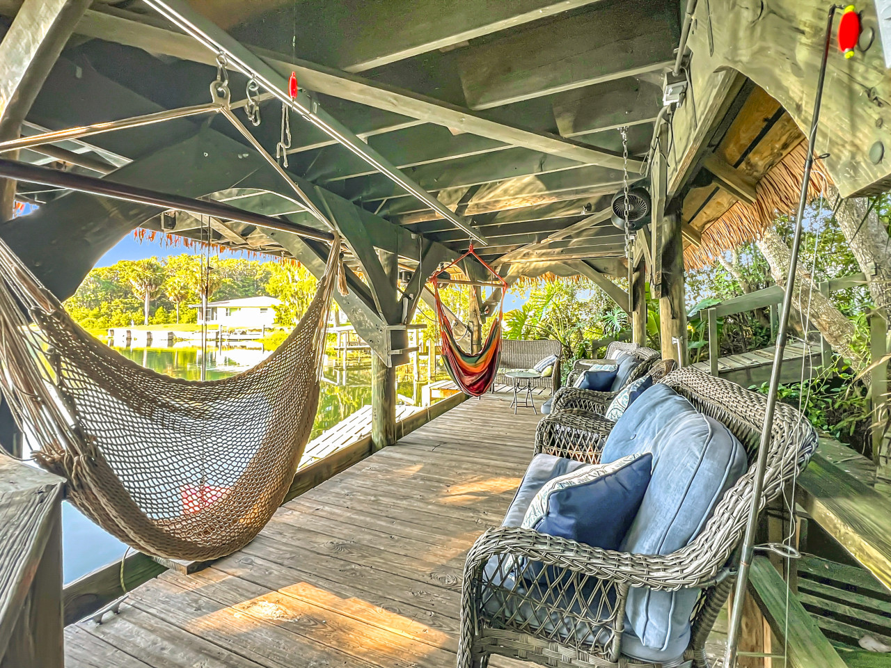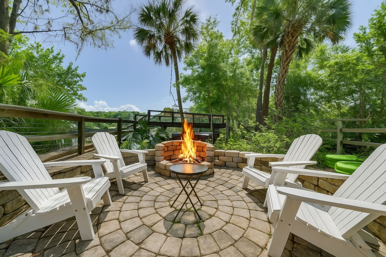 Discover the perfect blend of adventure and relaxation at this charming riverfront retreat in Dunnellon. Spend days kayaking crystal-clear waters, exploring Rainbow Springs, or unwinding on the rooftop deck with a sunset view. This home offers: 🌊... Private dock & on-site river access 🚲 6 kayaks & 4 bicycles for guest use 🔥 Outdoor fire pit & furnished patio 🍳 Fully equipped kitchen w/ Keurig & drip coffee makers 🛏 Spacious bedrooms w/ cozy bedding The Property: Highlights: Outdoor Enjoyment: Private dock, rooftop deck with river views, fire pit, hammock, furnished patio, outdoor dining, gas grill Water & Adventure Gear: 6 kayaks and 4 bicycles provided Kitchen Amenities: Refrigerator, stove/oven, microwave, dishwasher, blender, toaster, Keurig & drip coffee makers, dishware & cooking basics Living Comforts: 2 flat-screen TVs with cable, en-suite bathroom, walk-in shower, ceiling fans, 2 dining tables Convenience Features: Washer/dryer, central heating & A/C, linens, towels, complimentary toiletries Extras: Rainbow River access on-site, spring-fed at 72°F year-round Garage reserved for owner use (not accessible to guests) Alligator sightings possible; swimming requires caution Bedroom 1 TV supports streaming (HDMI input; bring device/cable) Sleeping Arrangements: Bedroom 1: King Bed Bedroom 2: Queen Bed Bedroom 3: 1 Twin/Full Bunk Bed, 1 Twin Bunk Bed Bedroom 4: 1 Twin/Full Bunk Bed with Twin Trundle Parking: 3 vehicles can be parked in the driveway The Location: 🌊 Rainbow River access (on-site) 🏙 Downtown Dunnellon (0.2 mi): shops, restaurants, galleries, boat tours 🌳 Rainbow Springs State Park & KP Hole Park (5 mi) 💧 Three Sisters Springs (17 mi) 🏌 Citrus Springs Golf & Country Club (6 mi) ✈ Tampa International Airport (86 mi)
