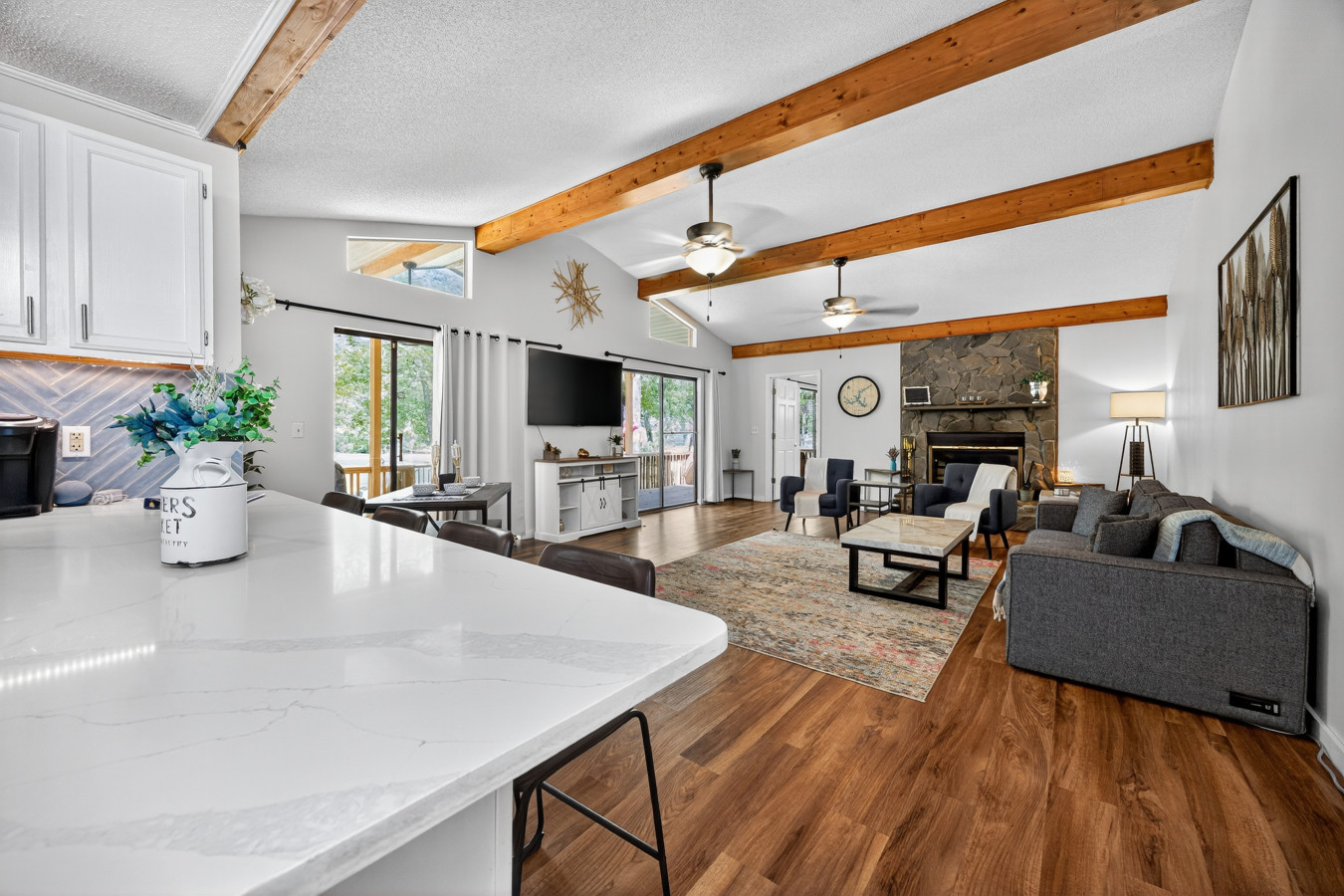 Reconnect, relax, and make memories at this family-friendly Lake Sinclair cabin. This cabin offers: 🛶 Kayaks, paddle boards & fishing dock 🔥 Hot tub, fire pit & outdoor pizza oven 🎮 Arcade games & kid-approved fun 🛏️ 3 bedrooms + cozy... living room for movie nights 🍳 Full kitchen & outdoor grill for family meals Perfect for families or friends seeking a laid-back lakeside escape with plenty of activities for all ages, just minutes from charming Eatonton! The Property: Highlights: - Outdoor Living: Wraparound porch, hot tub, pizza oven, fire pit, bocce ball, cornhole, dining table, lake access, fishing dock - Water Adventure: Kayaks & paddle boards included - Kitchen Features: Dishwasher, microwave, Keurig coffee maker, toaster, dishware & flatware, breakfast bar - Indoor Comforts: Smart TVs, arcade system, dining table, fireplace, exposed beams, desk workspace, ceiling fans - Convenience: Free WiFi, central A/C & heating, washer/dryer, linens & towels, cleaning essentials Extras: - 3 exterior security cameras (back deck and entry) Sleeping Arrangements: Bedroom 1: King Bed Bedroom 2: Queen Bed Bedroom 3: 2 Twin/Full Bunk Beds Living Room: Queen Sleeper Sofa Parking: Carport parking for 2 vehicles; driveway parking for 5 additional The Location: 🌊 LAKE SINCLAIR (on-site): Crooked Creek Marina (4.5 mi), Sinclair Marina (11.9 mi) 🌳 OUTDOOR FUN: Oconee Springs Park (14.3 mi), Rock Eagle 4-H Center (19.3 mi) 🏛 AREA ATTRACTIONS: Uncle Remus Museum (9.8 mi), Plaza Arts Center (10.1 mi), Flannery O’Connor Home (14.5 mi) ⛳ GEORGIA GOLFING: Uncle Remus Golf Course (10.6 mi), The Club at Lake Sinclair (16.5 mi) 🏙 NEARBY TOWNS: Eatonton (9.8 mi), Milledgeville (18.4 mi), Greensboro (27.2 mi) ✈️ AIRPORT: Middle Georgia Regional Airport (56.2 mi)