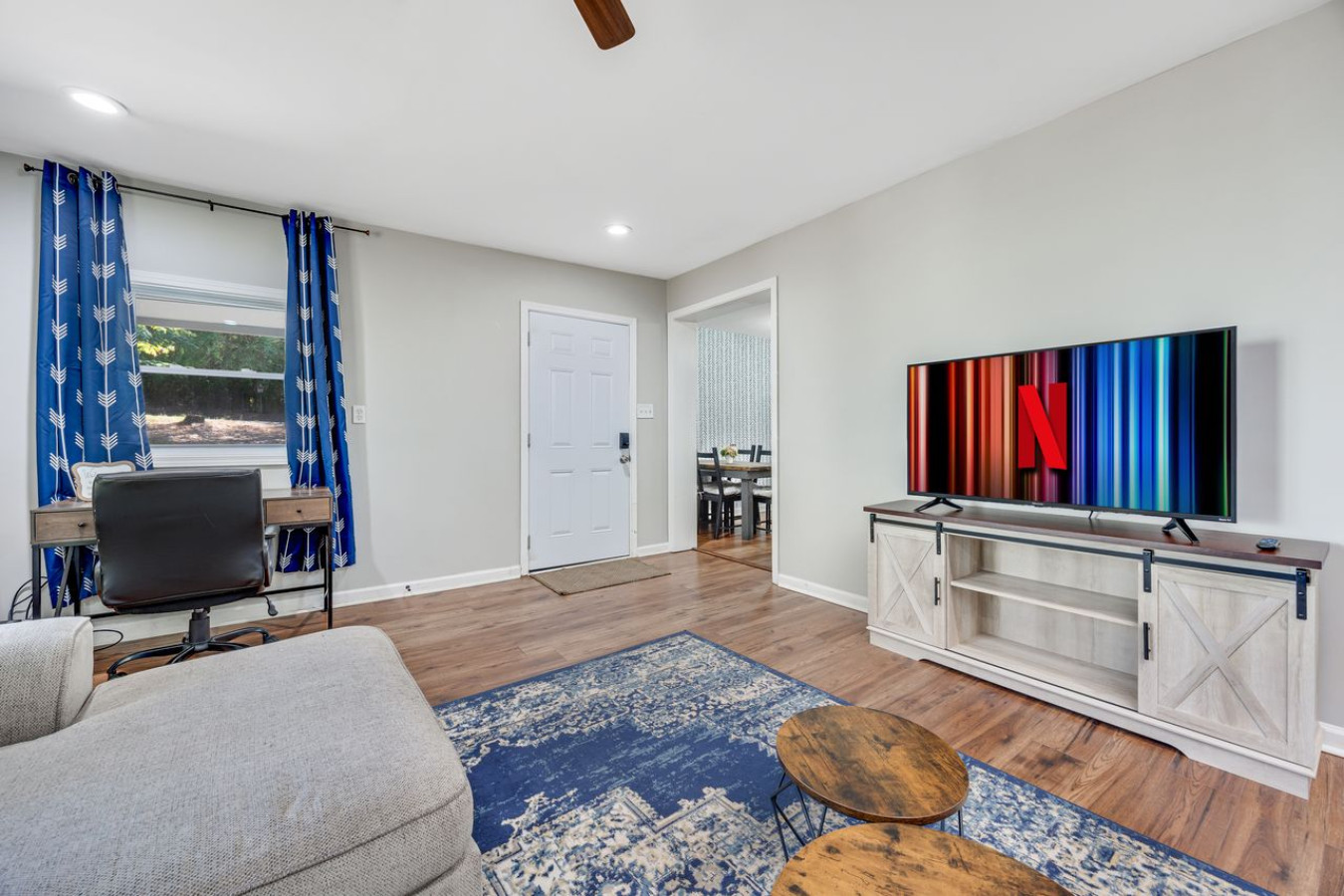 Discover comfort and convenience at this inviting 2-bedroom retreat in East Columbus, where relaxation and adventure await. Whether for work or play, you’ll feel right at home in this charming space. This home offers: 🌿 Fenced yard & patio 📺... Smart TV w/ streaming 🍳 Full kitchen essentials 🛏️ Family-friendly setups 💻 Work desk space Perfect for families, couples, or business travelers near Fort Moore, local parks, and Uptown Columbus. The Property: • Outdoor Living: Fenced yard, patio with outdoor seating • Kitchen Features: Full kitchen with stove, oven, refrigerator, dishwasher, drip coffee maker, toaster, microwave, dishware, cooking basics, and high chair • Living & Entertainment: Smart TV with Hulu, Netflix, Disney+, and ESPN, ceiling fans, and dining area • Comfort & Convenience: Central A/C and heat, laptop-friendly workspace, washer/dryer, complimentary toiletries, linens, towels, and hair dryer Extras: • Pack 'n Play provided for little ones Sleeping Arrangements: Bedroom 1: King Bed Bedroom 2: Twin/Full Bunk Bed with Twin Trundle Additional: Pack 'n Play Parking: 4 vehicles can be parked in the gravel driveway The Location: 🪖 Fort Moore Visitor Center (6 miles) 🌳 Cooper Creek Park (6 miles), Flat Rock Park (8 miles), Columbus Botanical Garden (8 miles) 🚀 Coca-Cola Space Science Center (6 miles), Downtown Columbus (6 miles), National Infantry Museum (9 miles), Museum of Wonder Drive Thru (20 miles) 🥾 Lakebottom Park (5 miles), Dinglewood Park (5 miles), Standing Boy Trail (14 miles), Phenix City Waterfall (14 miles), Falls on Mulberry Creek (22 miles), Cascade Falls Trailhead (33 miles) ⛳ Godwin Creek Golf Course (7 miles), Bull Creek Golf Course (9 miles), Fort Moore Golf Course (11 miles), Maple Ridge Golf Club (12 miles) ✈️ Columbus Airport (6 miles), Auburn University Regional Airport (43 miles)
