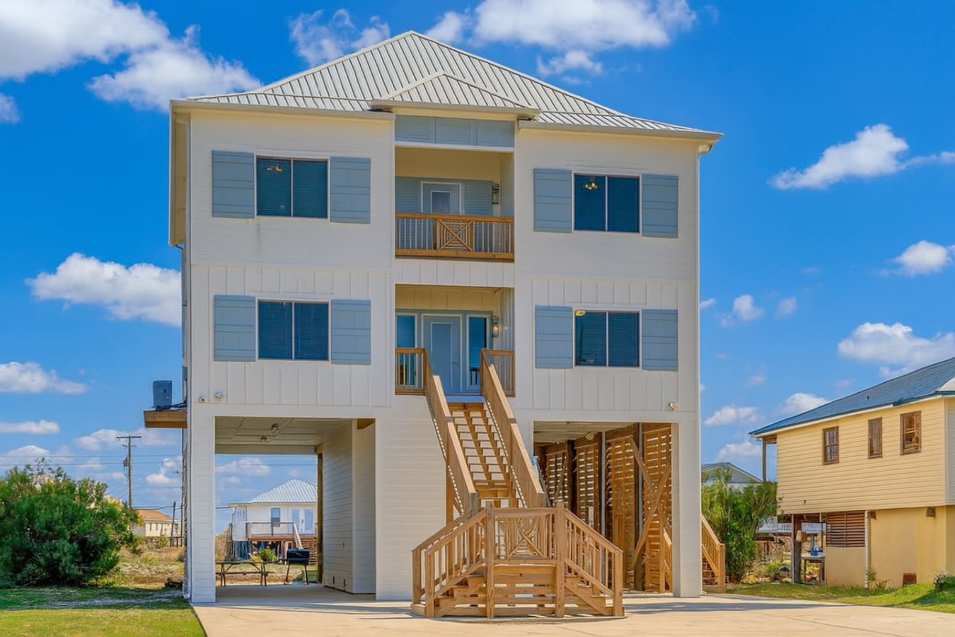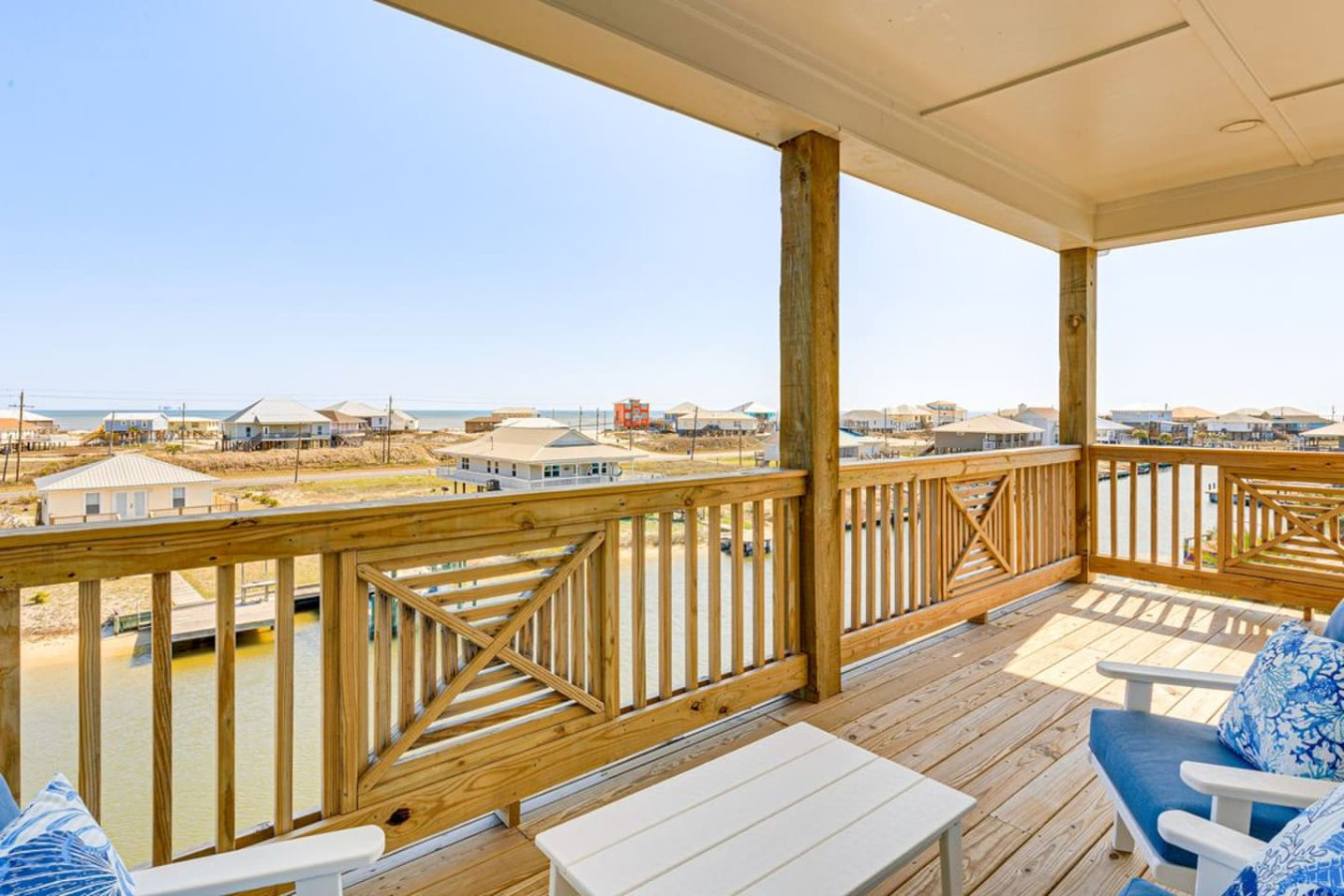 Escape to White Sands on Dauphin Island! This modern 5BR, 4.5BA retreat is perfect for families and groups. Enjoy a private dock, kayaks, bikes, al fresco dining, and an outdoor charcoal grill with coastal views. Spend your days swimming, sunbathin...g, or exploring nearby gems like Fort Gaines and the Alabama Aquarium. With spacious living areas and fun around every corner, it’s the ultimate spot for making unforgettable beach memories. Your island getaway starts here! The Property: The Property: * Private Dock (Up to 30' Boat) | Outdoor Shower | 4 Kayaks & Bicycles * OUTDOOR LIVING: Private dock, balcony, patio, outdoor seating & dining, charcoal grill, outdoor speakers (balcony & dock), crab walk, water & swimming access, life vests, outdoor shower, private yard * INDOOR LIVING: 7 Smart TVs, surround sound system, 2 living rooms, dining table, breakfast bar * KITCHEN: Stove/oven, refrigerator, dishwasher, cooking basics, dishware/flatware, drip & Keurig coffee makers, blender, toaster, Crockpot * GENERAL: Free WiFi, central heating & A/C, 2 washers, 2 dryers, linens/towels, hair dryer * FAQ: 6 exterior security cameras (facing out) * ACCESSIBILITY: Stilted 2-story home, exterior steps to enter, 2 bedrooms & 2 bathrooms on main level Sleeping Arrangements: Sleeping Arrangements: * Bedroom 1: 1 King Bed * Bedroom 2: 1 King Bed * Bedroom 3: 1 King Bed * Bedroom 4: 1 King Bed * Bedroom 5: 2 Full Bunk Beds * Downstairs Living Room: 1 Queen Sleeper Sofa * Upstairs Living Room: 1 Queen Sleeper Sofa * Additional Sleeping: 1 Twin Rollaway Bed, 1 Portable Crib Parking: Parking * 10 vehicles can be parked in the driveway * Additional street parking is available on a first-come, first-served basis * Boat trailer parking allowed on-site The Location: The Location: * Close to restaurants, shopping & watersports * Beaches: Bienville Blvd Beach, Dauphin Beach, West End Public Beach, Dauphin Island East End Public Beach (0.3–5 miles) * Nature & Attractions: Audubon Bird Sanctuary (4 miles), Alabama Aquarium (5 miles) * Airports: Mobile Regional Airport (39 miles), Gulfport-Biloxi International Airport (85 miles)