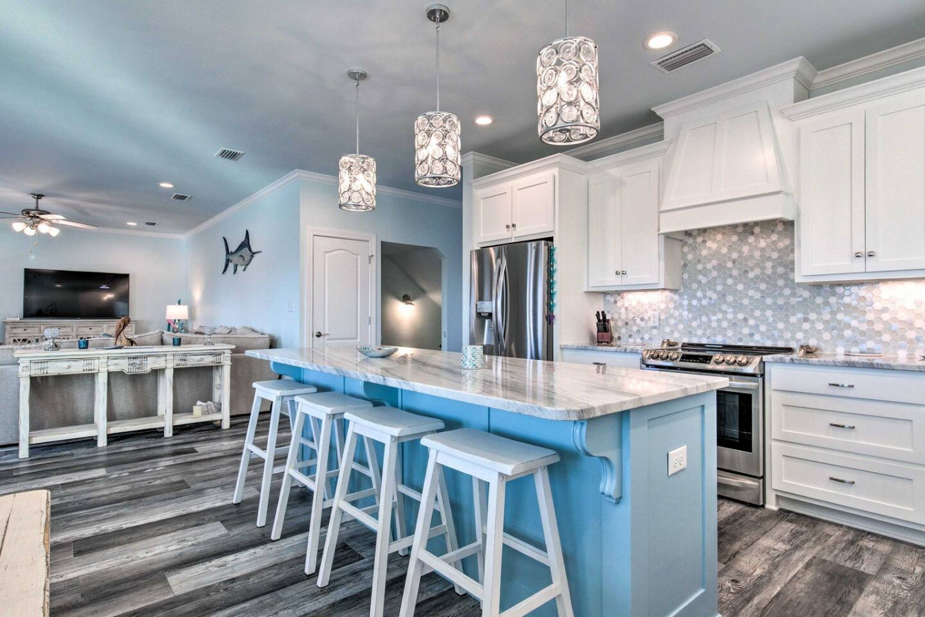 Experience the ultimate Dauphin Island getaway in this stunning 6-bed, 4.5-bath home with 3,400 sq ft of comfort! Enjoy a private dock, kayaks, bikes, two living rooms, a chef’s kitchen, and covered balcony. Just minutes from Dauphin Island Bea...ch, Audubon Bird Sanctuary, Sea Lab, and great dining spots. Relax with Smart TVs, WiFi, outdoor shower, and beachy décor. Perfect for groups and families looking to explore top Gulf Coast attractions in style and luxury! The Property: OUTDOOR LIVING: Covered balcony, outdoor seating, bicycles, outdoor shower, private dock, 4 kayaks INDOOR LIVING: Flat-screen Smart TVs, beachy decor, VCT floors, ceiling fans, 2 living rooms KITCHEN: Fully equipped, coffee maker, dishware and flatware, dishwasher, large kitchen island, breakfast bar, tile backsplash GENERAL: Free WiFi, air conditioning, linens/towels, 2 washer/dryers (one on each floor), hair dryers, newly built property Sleeping Arrangements: Bedroom 1: King Bed Bedroom 2: King Bed Bedroom 3: King Bed Bedroom 4: King Bed Bedroom 5: 2 Twin Bunk Beds, 2 Twin Trundle Beds Bedroom 6: 2 Twin Bunk Beds, 2 Twin Trundle Beds Living Room: Sleeper Sofa Parking: 4 vehicles can be parked in the covered parking spots 6 additional vehicles can be parked in the driveway The Location: BEACHES + PARKS: Bienville Blvd (0.3 miles), Public Beach (1.4 miles), Dauphin Beach (2.7 miles), West End Public Beach (3.0 miles), Dauphin Island Park & Beach Board (4.3 miles), Dauphin Island East End Public Beach (4.8 miles) THINGS TO DO: Audubon Bird Sanctuary (3.8 miles), The Estuarium at Dauphin Island Sea Lab (4.5 miles), Bellingrath Gardens & Home (18.6 miles), Round Island Lighthouse (46.8 miles), Gulf Shores (91.4 miles) DINING: Islanders Restaurant (1.3 miles), Dority’s Bar & Grill (2.3 miles), Miguel’s Beach’n Baja (2.3 miles), Foxy’s Waffle Bar and Sugar Den (2.3 miles), Jt’s Sunset Grill (2.4 miles), Pirate’s Bar & Grill (2.5 miles), Capt’n Snapper’s (3.0 miles) GROCERY: Greer's Market - 10835 Dauphin Island Pkwy, Theodore, AL 36582, (251) 973-0309 MEDICAL: Mobile Infirmary Emergency Room - 5 Mobile Infirmary Cir, Mobile, AL 36607, (251) 435-2400 AIRPORTS: Mobile Regional Airport (39.4 miles), Gulfport-Biloxi International Airport (84.6 miles)