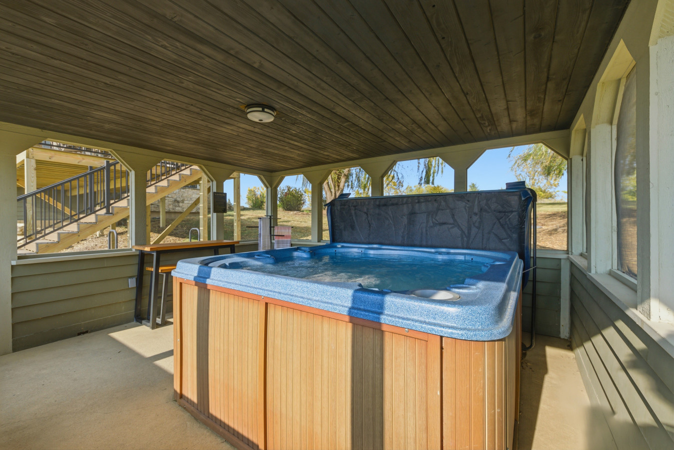 Escape to the peaceful beauty of Galena in this spacious retreat designed for comfort and fun. This home offers: ✨ Private hot tub & screened gazebo 🎮 Game room with arcade, foosball & poker table 🔥 Wood-burning fireplace & jetted soaking tu...b 🍳 Fully stocked kitchen with Keurig + essentials 🏞️ Access to pools, spa, clubhouse & trails 🅿️ Ample parking for up to 5 cars Perfect for families, couples, or groups seeking a relaxing getaway in charming Galena! The Property: Highlights: - Outdoor relaxation w/ hot tub, gazebo, deck, fire pit & gas grill - Gourmet kitchen w/ Keurig, drip coffee maker, crockpot & cooking basics - Game room fun w/ arcade, foosball, poker table & TVs - Cozy living w/ fireplace, ceiling fans, jetted tub & Smart TVs - Convenience w/ washer/dryer, free WiFi, linens, towels & toiletries Extras: - 6 keycards to access community amenities - 3-story layout w/ optional stair-free entry to 2 bedrooms via back door Sleeping Arrangements: Bedroom 1: King Bed Bedroom 2: Queen Bed Bedroom 3: King Bed Bedroom 4: King Bed Bedroom 5: 2 Twin Beds Additional: 1 Portable Crib Parking: There is space in the driveway to accommodate up to 5 vehicles. The Location: 🎩 Historic Sites & Museums • Ulysses S. Grant Home • The Dowling House • Old Blacksmith Shop • Old Market House • Turner Hall • P.T. Murphy Magic • River Bend Gallery 🌿 Outdoor Recreation in Galena • Galena Grant Park • Galena River Trail • Linmar Gardens • West Street Sculpture Park • Horseshoe Mound • Casper Bluff Land & Water Reserve • Thunder Bay Falls • Lake Galena • Buehler Preserve 🍷 Best Galena Dining & Drinks • Galena Cellars Winery • Galena Brewing Company • Champagne on Main • Blaum Bros. Distilling Company • Durty Gurt's • Fried Green Tomatoes • Otto's Place • Bread & Vine What to do at the Owner's Club: • Indoor & Outdoor Pools • Tennis, Pickleball & Basketball Courts • Fitness Center • Game Room • Business Center • Seasonal Café How to Access the Owner's Club: Proximity cards are provided in all Galena Territory homes. Some homes may not have enough cards for the whole group—additional guest passes can be purchased for $5/day at the GTA admin office. Parking passes are required at the GTA Owners Club and Lake Galena Marina and can also be picked up at the admin office.