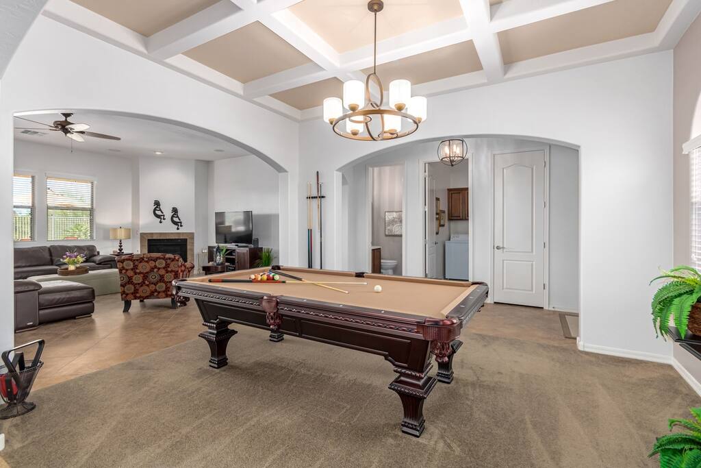 Luxury Stay at Estrella Mountain Ranch The Space: Luxury Stay at Estrella Mountain Ranch - Reserve this captivating property for an exclusive retreat, featuring full access to the entire home - a private backyard complete with a swimming pool (optio...nal heating available), a patio equipped with a gas barbecue grill and a welcoming fire pit, and a secure, gated courtyard. The home impressively extends over 2481 square feet, artfully furnished with contemporary decor and generous space for your ultimate comfort and enjoyment. This unique property entices you from the first step through the secure gates into the tranquil courtyard. Here, a cozy alcove presents the ideal spot to savor your morning coffee under the warm Arizona sun. Upon entering the home, you're greeted with an appealing blend of magnificence and meticulous attention to detail. The entrance hall presents a full-size pool table, leading you into the expansive living room and kitchen area. The living room boasts ample seating with a roomy sectional and extra chairs, creating the perfect space for relaxation and creating memories. Awaiting your culinary adventures is a kitchen equipped with granite countertops, a large central island illuminated by chic pendant lights, a walk-in pantry, and top-of-the-line stainless steel appliances. The kitchen is a chef's dream with plenty of cabinet space and more, and it comes fully stocked with everything you need to prepare a gourmet meal or create vacation-worthy drinks, including a dedicated Margaritaville margarita machine for the ultimate poolside indulgence. Dining options include a table that comfortably seats six and a kitchen island that can accommodate an additional four. Immerse yourself in this unforgettable oasis, where modern luxury meets the comfort of home. Positioned at the heart of numerous local sports attractions, the location provides unmatched convenience for sports enthusiasts. Find yourself just an 8-minute drive from Goodyear Ballpark, and a mere 13 minutes from Phoenix International Raceway. A brief 30-minute drive will take you to Maryvale Baseball Park, Camelback Ranch, Surprise Stadium, and Peoria Sports Complex. For football fans, State Farm Stadium is easily accessible, and the vibrant hub of downtown Phoenix is also within a short distance. Guest Access: Guests will have access to all areas of the home and backyard. The pool is private and the backyard is fenced in. Pool vendors, Trash vendors, landscaping and pest control service the home weekly, and monthly. They do have access to the backyard and this may occur during your stay. Interaction with Guests: We offer contactless check-in. However, we will be available by phone during your stay. Additionally, we offer in-person support/maintenance when needed. The Neighborhood: This Deluxe 4 B/R home located in the quiet neighborhood in the heart of Estrella Mountain Ranch. Estrella is filled with more than 40 parks, lakes, Championship golf, and stunning mountain views Estrella Mountain Regional Park is 12 miles away. The park offers a variety of hiking, biking and horse trails, as well as great bird and wildlife watching opportunities. Park is open 365 days a year – 6 a.m. to 8 p.m. Sunday through Thursday and 6 a.m. to 10 p.m. on Friday's and Saturday's. Estrella Star Tower is 5 miles away. Golf Park of Estrella is 2 miles away. Phoenix International Raceway is 14 miles away. The motorsport track opened in 1964 and currently hosts two Nascar race weekends each year Goodyear Ballpark is 9 miles away. Litchfield Park Historical Society Museum Other Things to Note: Upon booking, we will request that you sign our rental agreement, which outlines the house rules and safety guidelines. Failure to sign may result in the cancellation of your reservation. Your safety matters. An exterior security doorbell camera is located at the front door, facing out towards the entrance. There is also a camera facing the gate in the back yard and one in the garage. There are no cameras facing the pool or any interior areas. Pets are welcome however fees may apply depending on the size and breed of the pet Cancelation fees may apply Pool heat is optional - fees may apply