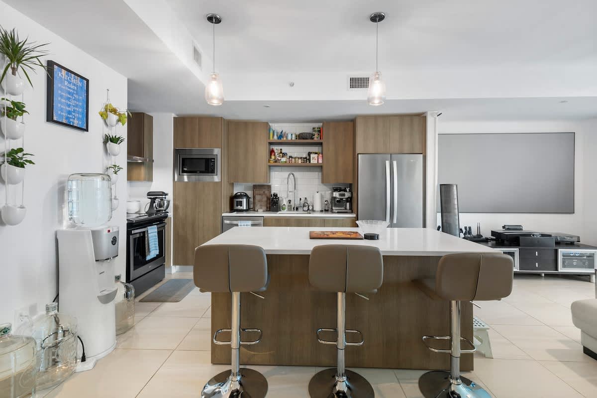 Stay in Miami’s Financial District where luxury, walkability, and convenience meet. Queen bed, fast Wi-Fi + workspace, 65″ 4K Smart TV with cable & streaming apps, PlayStation 5, fully equipped gourmet kitchen, in-unit washer & dryer, spa-style a...menities, and valet parking available. Ideal for corporate stays and extended visits. The Space: High-rise energy. Residential comfort. Brickell at your doorstep. This modern, design-forward one-bedroom blends comfort, functionality, and elevated city living. Whether you are in Miami for business, relocation, or an extended stay, this space is designed for real living, not just sleeping. Walk to Brickell City Centre, Mary Brickell Village, waterfront parks, and hop on the free Metromover for effortless access to Downtown Miami, Bayside Marketplace, and Museum Park. Perfect for professionals, couples, and extended-stay guests who want more than a hotel room. --- Apartment Highlights * Prime location in the Brickell Financial District * Steps from the free Metromover station * Queen bed with hotel-quality linens and blackout curtains * 65-inch 4K Smart TV with cable plus Netflix, Hulu, Disney+, and Roku * PlayStation 5 console * Reliable high-speed Wi-Fi * Dedicated laptop-friendly workspace * In-unit washer and dryer * Fully equipped kitchen with stainless steel appliances * Resort-style pool, spa, steam room, and fitness center * Rooftop lounge with skyline views * Paid valet parking available --- Sleeping and Bath Bedroom * Queen bed with premium mattress * Blackout curtains for uninterrupted sleep * Clean, calming modern design Bathroom * Soaking tub and shower combination * Plush towels * Starter essentials provided --- Gourmet Kitchen Designed for extended stays and everyday convenience. * Stainless steel refrigerator, oven, microwave, and dishwasher * Complete cookware, utensils, and prep essentials * Coffee setup for productive mornings * Ample counter space Cook, dine, and live on your schedule. --- Technology and Remote Work Built for professionals and remote travelers. * Stable high-speed Wi-Fi * Dedicated workspace * 65-inch 4K Smart TV * PlayStation 5 for entertainment Video calls by day. Streaming or gaming by night. --- Resort-Style Building Amenities Guests have access to: * Swimming pool with lounge seating * Spa and steam room * Fully equipped fitness center * Rooftop lounge with skyline views * Secure building access * On-site paid valet parking Upscale high-rise living without hotel restrictions. --- Why Book This Instead of a Hotel? Hotels give you a room. This gives you lifestyle flexibility. * Separate bedroom and living space * Full kitchen for real meals * In-unit washer and dryer for longer stays * Workspace for productivity * Resort-style amenities included * Walkable Brickell location Designed for multi-week and monthly stays. --- Ideal For * Corporate housing and relocations * Financial district professionals * Couples’ getaways * Extended stays and monthly rentals * Remote workers and digital nomads Guest Access: Guests enjoy full private access to the apartment, along with shared access to building amenities. Private Access * Entire private one-bedroom residence Building Amenities * Resort-style pool and spa * Fitness center * Rooftop lounge Arrival Arrival is seamless and flexible. * Self check-in * Lockbox access for key retrieval * Detailed check-in instructions sent prior to arrival Parking Options * Paid valet parking available in the building (approximately $55 per day, subject to change) * Public garage parking nearby (approximately $10 per day, subject to change) Arrive on your schedule — no waiting required. Interaction with Guests: We respect your privacy while remaining fully available when needed. Guest Support * Self check-in via secure lockbox * 24/7 guest support * Reach our team anytime via SMS, phone call, or the booking platform message system Whether you have a late arrival or need recommendations, our team responds promptly to help ensure a smooth stay. The Neighborhood: About Brickell and Downtown Miami Brickell is Miami’s Financial District — sleek, walkable, and waterfront. Steps from: * Brickell City Centre * Mary Brickell Village * Waterfront parks * Free Metromover station Nearby attractions: * Pérez Art Museum Miami * Frost Museum of Science * Adrienne Arsht Center * Bayside Marketplace Quick access to Wynwood, the Design District, Coconut Grove, and Miami Beach. Approximately 15 to 20 minutes to Miami International Airport (MIA), traffic permitting. Brickell offers urban convenience with tropical energy. Getting Around: Walk Score: 97 — Walker’s Paradise Restaurants, shopping, nightlife, and public transit are just steps away. Free Metromover Connects Brickell, Downtown, and the Omni District — no ticket required. Metrorail Access Direct connection to Miami International Airport, Coral Gables, and Coconut Grove. Brightline Rail High-speed rail service to Fort Lauderdale, West Palm Beach, and Orlando. Nearby Destinations * Miami Beach: 15–20 minutes * Wynwood: approximately 10 minutes * Design District: approximately 10 minutes * Coconut Grove: approximately 15 minutes Car-free convenience with full city connectivity. Other Things to Note: House Rules * Non-smoking property * No parties or events * Quiet hours: 10:00 PM – 7:00 AM * Rooftop pool hours: 9:00 AM – 9:00 PM * Early check-in or late checkout available upon request, subject to availability