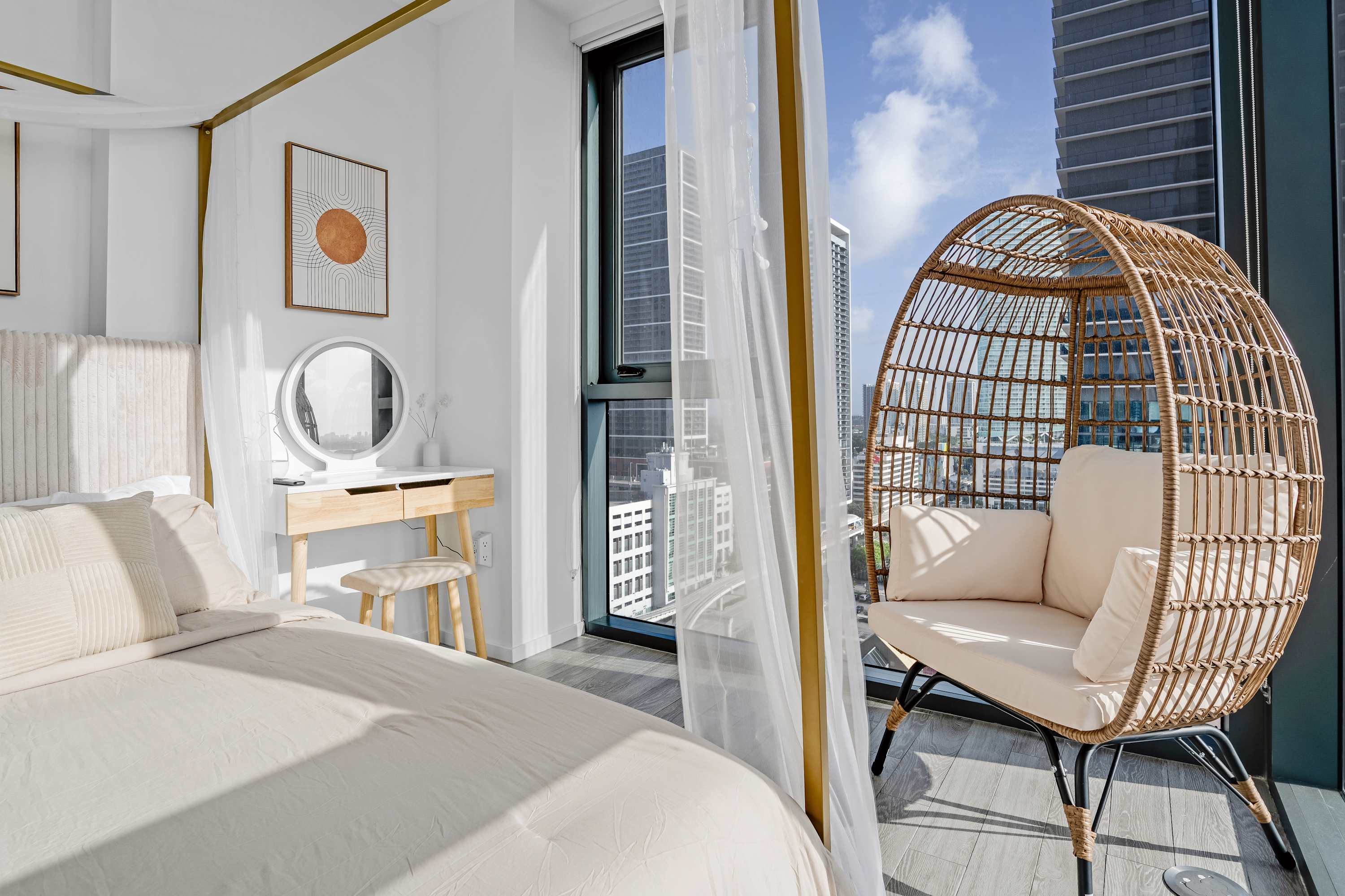 Stay in a light-filled corner residence in Miami’s Central Business District overlooking the city skyline and Biscayne Bay. King suite, Queen bedroom, daybed with trundle (sleeps 6), fast Wi-Fi with monitor-equipped workspace, 65″ Smart TV, in-un...it washer & dryer, resort-style pool with hot tub, fitness center, secured garage parking, and Level 2 EV charging. Ideal for extended stays and executive travel. The Space: Live central. Stay elevated. Move effortlessly. This professionally designed two-bedroom corner residence blends modern comfort with sweeping city and water views. Floor-to-ceiling windows fill the space with natural light while overlooking Downtown Miami’s skyline and Biscayne Bay. You are one block from Bayfront Park and Bayside Marketplace, steps from the free Metromover, minutes from Brickell and Brightline at MiamiCentral, and close to PortMiami. Whether you are visiting for corporate relocation, a cruise departure, or an extended Miami stay, this space offers executive-level functionality with walkable convenience. --- Apartment Highlights * Corner unit with city skyline and Biscayne Bay views * King primary suite * Queen second bedroom * Daybed with trundle (sleeps up to six guests) * High-speed Wi-Fi * Dedicated workspace with external monitor * 65-inch Smart TV with cable and streaming apps * Fully equipped gourmet kitchen * In-unit washer and dryer * Resort-style pool and hot tub * State-of-the-art fitness center * Rooftop lounge with panoramic skyline views * Secure garage parking for one vehicle * Level 2 EV charger in building garage --- Sleeping Arrangements Primary Suite * King bed * Ensuite bathroom * Walk-in closet * Vanity station Second Bedroom * Queen bed with closet storage Living Area * Daybed with trundle Comfortable for families, business travelers, cruise guests, and small groups. --- Bathrooms * Modern walk-in shower * Plush towels * Starter toiletries provided Clean, contemporary, and thoughtfully stocked. --- Designed for Remote Work Built for productivity. * Dedicated desk setup * Docking station with external monitor * Fast, stable internet connection * Quiet high-rise environment Ideal for corporate housing, executive stays, and digital professionals. --- Gourmet Kitchen Functional for both short visits and extended stays. * Stainless steel appliances * Full cookware and chef-ready utensils * Dishwasher * Coffee setup * Ample counter space Walk to nearby restaurants or cook at home with a view. --- Building Amenities Guests enjoy access to: * Resort-style swimming pool * Hot tub * Fitness center * Rooftop lounge with skyline views * Secure building entry * Covered garage parking * Level 2 EV charging station EV travelers can charge overnight in the building garage and start each day ready to go. --- Why Book This Instead of a Hotel? Because this gives you more than a room. * Two separate bedrooms * Full kitchen * In-unit washer and dryer * Dedicated workspace * City and water views * Secure parking * Level 2 EV charging * Walkable downtown location Executive-level living without hotel limitations or resort fees. --- Ideal For * Corporate relocations * Extended stays * Cruise passengers traveling to PortMiami * Business travelers * Families visiting Miami * Digital nomads Guest Access: Guests enjoy full private access to the entire apartment, along with shared access to all building amenities. Private Access * Private two-bedroom corner residence Building Amenities * Swimming pool and hot tub * Fitness center * Rooftop lounge * Secure garage parking for one vehicle * Level 2 EV charging Arrival Arrival is seamless and flexible. * Self check-in * Lockbox access for key retrieval * Detailed check-in instructions provided before arrival Arrive on your schedule with no waiting required. Interaction with Guests: We respect your privacy while remaining fully available when needed. Guest Support * Self check-in via secure lockbox * 24/7 guest support * Reach our team anytime via SMS, phone call, or the booking platform message system Whether it is a late arrival, cruise coordination, or a request for local recommendations, our team responds promptly to help ensure a smooth stay. The Neighborhood: About Downtown Miami Central Business District Downtown Miami’s Central Business District sits between Biscayne Bay and Brickell’s Financial District, offering waterfront parks, transit access, and cultural attractions within walking distance. Walk to * Bayfront Park * Bayside Marketplace * Kaseya Center * Whole Foods * Metromover stations Minutes to * Brickell Financial District * Brightline at MiamiCentral * Pérez Art Museum Miami * Frost Museum of Science * PortMiami You are centrally positioned for business, culture, and waterfront living. Getting Around: Ultra-Walkable Location Most dining, shopping, and entertainment options are within a five-minute walk. Free Metromover Connects Downtown, Brickell, and the Omni neighborhoods with no ticket required. Metrorail Access Direct connection to Miami International Airport, Coral Gables, Coconut Grove, and South Miami. Driving and Highways Quick access to I-95 and Biscayne Boulevard. Nearby Neighborhoods * Wynwood: approximately 10 minutes * Design District: approximately 10 minutes * Miami Beach: 15–20 minutes * Miami International Airport: approximately 15 minutes Car-free convenience with optional secure parking and EV charging available. Other Things to Note: House Rules * Non-smoking property * No parties or events * Quiet hours: 10:00 PM – 7:00 AM * Rooftop pool hours: 9:00 AM – 9:00 PM * Early check-in or late checkout available upon request, subject to availability