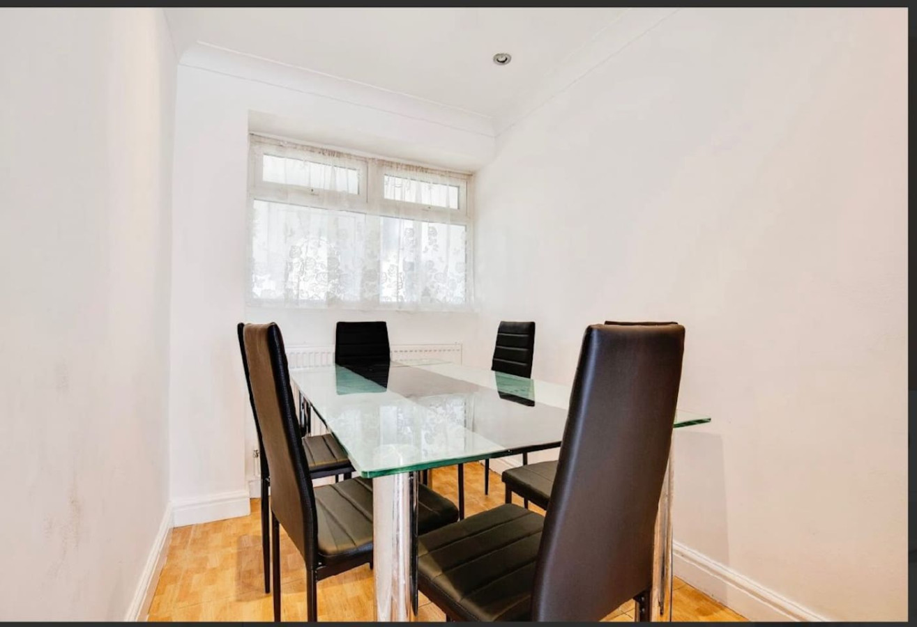 ๐Welcome to your elegant and modern retreat in the peaceful London suburb of Northolt! Situated on Vanbrough Crescent, this spacious 3-bedroom house is the ideal base for families, couples, and professionals needing quick access to both Heathrow A...irport and Central London. Whether you're here for work or sightseeing, comfort and convenience are guaranteed! We prioritize your health and relaxation with professional cleaning and top-tier amenities. โจ Highlights of The Space ๐๏ธ Sleeps 5: Comfortable accommodations for your whole group with quality mattresses: Super King Bed ๐ Second Super King Bed ๐ Twin Bed ๐ฟ 2 Modern Bathrooms: Includes an upstairs walk-in shower and bathtub for ultimate relaxation, plus a convenient downstairs toilet. ๐ป Entertainment: Cozy living area with a TV and Free Wi-Fi. ๐งบ Kitchen & Laundry: Fully equipped kitchen featuring a dishwasher and a washing machine for long stays. โ๏ธ Private Balcony: Enjoy a moment of peace on your private balcony, complete with outdoor furniture. ๐ถ Pets Welcome: Furry friends may be allowed! (Pet fee applies.) ๐ Location: Unbeatable London Access Your home's location on Vanbrough Crescent is perfect for seamless travel: Northolt Tube Station (Central Line): Just a 5-minute walk! Get to the heart of Central London in under 40 minutesโdirect access to Oxford Circus, Bank, and the West End. ๐ Heathrow Airport (LHR): Only a 10-minute drive! Ideal for hassle-free travel and early flights. โ๏ธ Wembley Stadium & SSE Arena: Reach major event venues in about a 15-minute drive for concerts and sports. ๐๏ธ Parks & Leisure: Northala Fields (scenic park) is a 10-minute walk for walks and outdoor activities. ๐ณ Shopping: Quick 10-15 minute drive to Ealing Broadway for fantastic shopping and dining. ๐๏ธ ๐ Parking & Home Details Parking: Free on-site parking is provided for 1 car. ๐ ฟ๏ธ Access: You get exclusive private access to the entire house (including the Balcony and Parking Area) via a private entrance. Complimentary: Fresh linens, towels, tea, and coffee are all provided. ๐ผ Extended Stays & Booking We are set up for longer stays! Ask about our special long-term discounts for those on business, relocating, or working away. ๐ Check-in & House Rules CHECK-IN: 3:00 PM | CHECK-OUT: 10:00 AM Access: Key safe check-in details sent at 3 PM on arrival day. Rules: No parties/events, No smoking. Bin collection is every Thursday morning. Book your convenient London base today! ๐