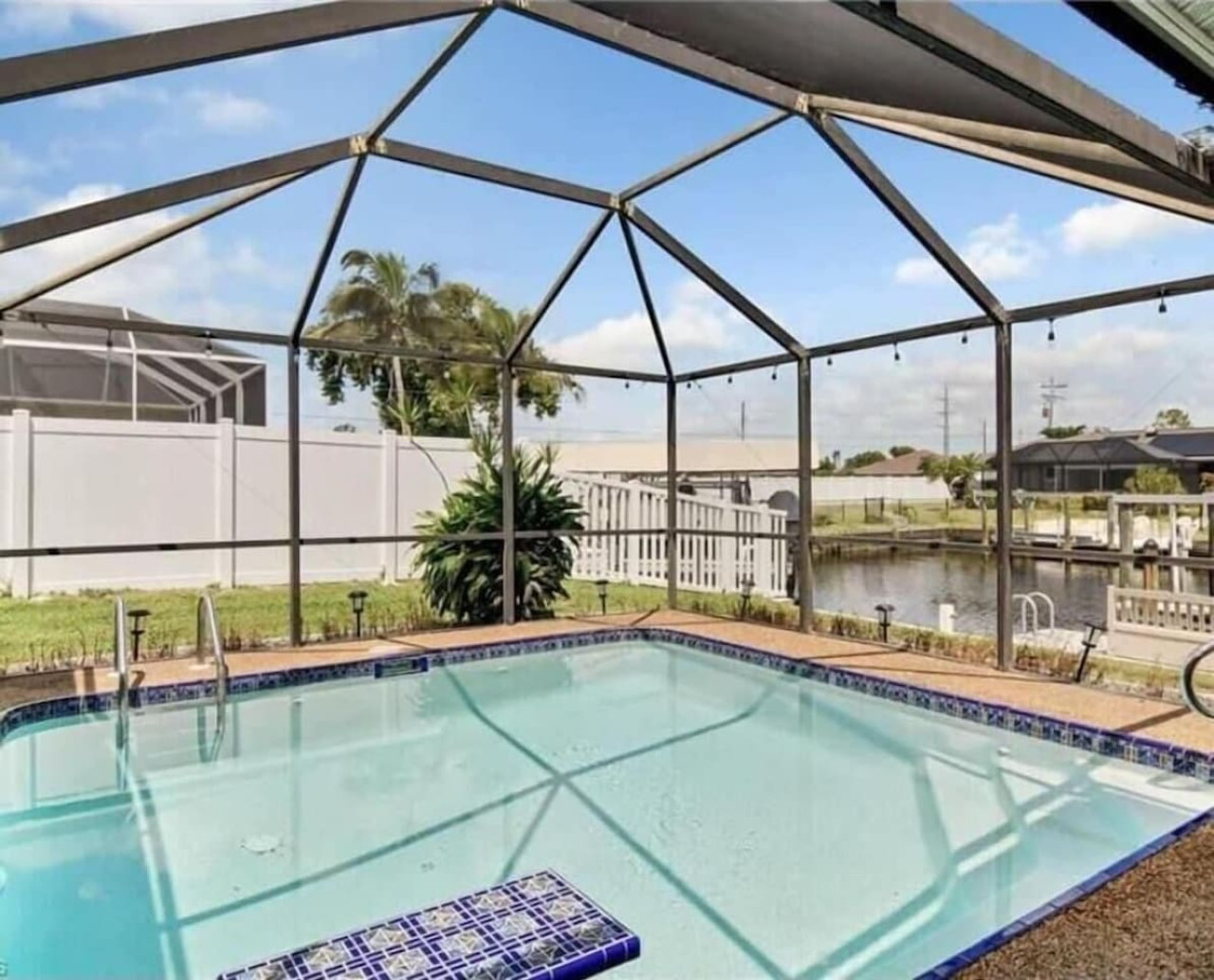 Escape the everyday and indulge in the tranquility of this beautiful 3-bedroom, 2-bathroom home with a heated pool. Set along a peaceful canal, this retreat offers the ideal balance of relaxation and excitement, perfect for families, friends, or coup...les looking for an unforgettable vacation. In the Heart of Cape Coral. Waterfront adventures: Kayak or paddleboard directly from your backyard, cast a line and try your hand at fishing, or simply watch the playful dolphins cruise by. Unwind in style: The spacious living area invites you to relax and connect, while the fully equipped kitchen allows you to whip up delicious meals or enjoy local takeout on the screened-in patio with a propane BBQ. Restful nights: Drift off to sleep in one of the three comfortable bedrooms, each featuring plush bedding and calming canal views. Beyond the home: Explore vibrant beaches: Just a short drive away, discover pristine beaches with soft sand and endless opportunities for swimming, sunbathing, and watersports. Delight in local flavors: Savor fresh seafood at nearby restaurants, explore charming shops, or immerse yourself in the vibrant nightlife. Embark on thrilling excursions: From boat tours and jet skiing adventures to nature walks and historical landmarks, discover endless possibilities for excitement. This is more than just a vacation rental; it's an experience. Whether you're seeking sun-kissed days by the pool, exciting water adventures, or simply a tranquil escape, our canal-front haven. Enjoy exclusive access to the entire 3-bedroom house, including the private pool, backyard, and all amenities." "You'll have the run of the place! All rooms, living areas, kitchen, and bathrooms are yours to use during your stay." "Please note that there is a locked cabinet containing personal belongings which will not be accessible to guests” Available to answer questions and address concerns promptly. Happy to offer recommendations and local tips. Committed to ensuring a comfortable and enjoyable stay.