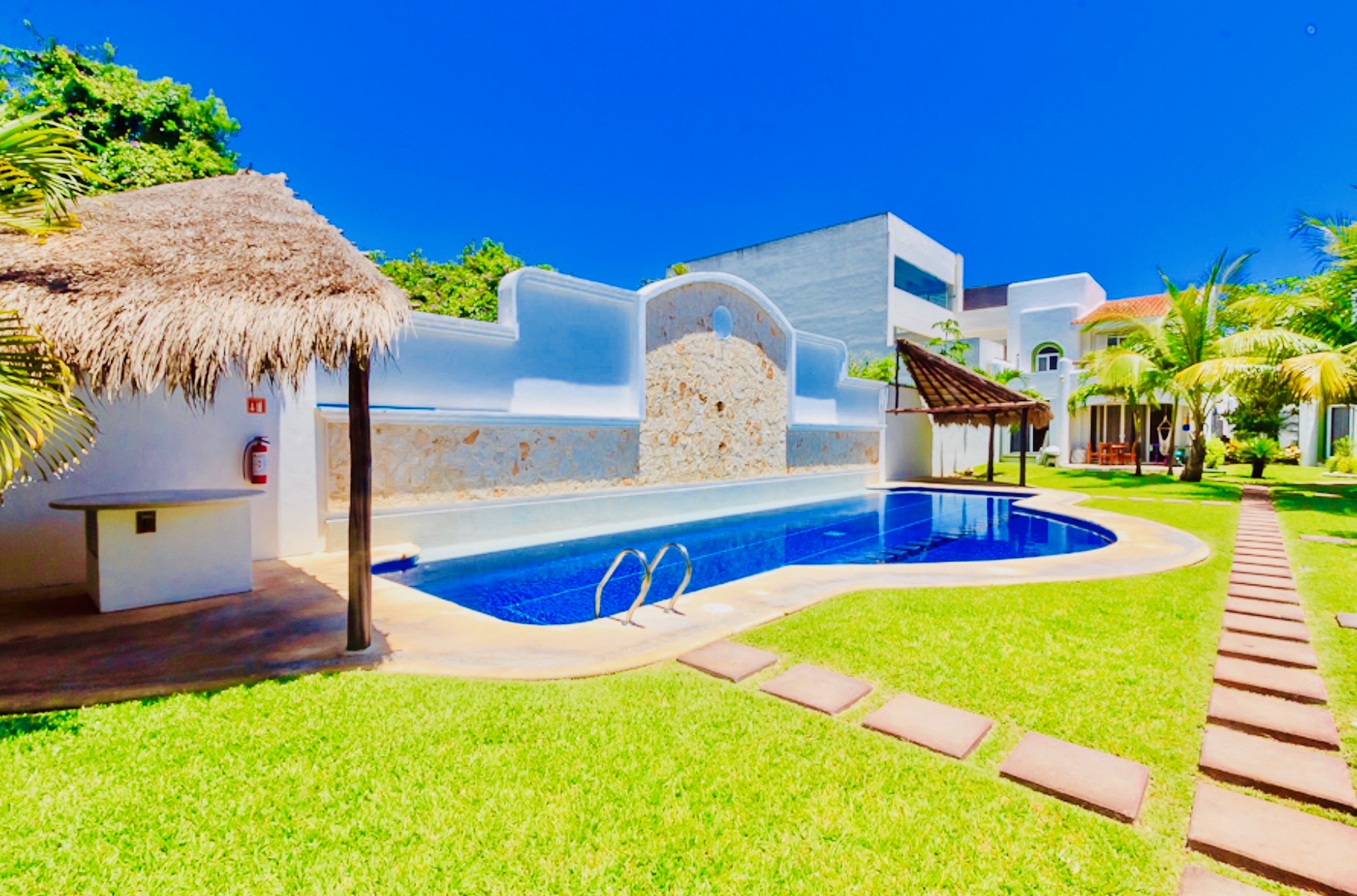 Bella villa privata situata all'interno del condominio più "Chic" della città con vigilanza H24, ristoranti, locali e campo da Golf. Dolce Vita Caribe si trova in Playacar fase 2 a soli 500 mt. dalla spiaggia e dalla famosa 5ta Avenida. Dispost...a su 2 livelli, 4 camere da letto e una capacità sufficiente per ospitare fino a 11 persone, questo è l'ultimo rifugio di vacanza che stai cercando. Decorato con toni caldi, è stato dotato di tutto ciò di cui avrete bisogno per godervi una vacanza tranquilla. Il piano terra dispone di un accogliente soggiorno/sala da pranzo. La cucina è completamente attrezzata con tutti gli utensili di cui avrete bisogno. La prima camere da letto degli ospiti al piano terra dispone di un letto King Size. La seconda camera degli ospiti al piano superiore dispone di un letto Kink Size ed uno singolo. La terza camera da letto ha un letto king size ed un letto a castello. La quarta camera da letto dispone di un letto matrimoniale. Un balcone è disponibile appena fuori dalla camera da letto principale. Tutte le nostre camere dispongono di bagno privato, Tv via Cavo ed aria condizionata. Il patio anteriore privato si affaccia sulla piscina.