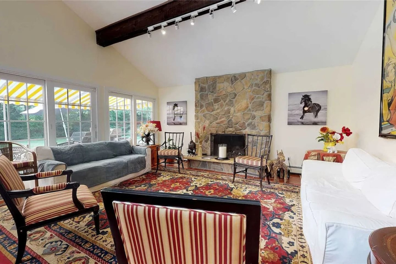 Relax in this backyard oasis with a gunite inground pool and cabana featuring double sliders opening to a full wet bar. The beautifully landscaped yard offers space to play, plus a shaded deck with BBQ and awning. Inside, enjoy an open layout with an... eat-in kitchen, dining for six, living room with fireplace, and private den with TV. The spacious master suite boasts a sitting area, walk-in closet, and spa-like bath. Two more bedrooms and full amenities.