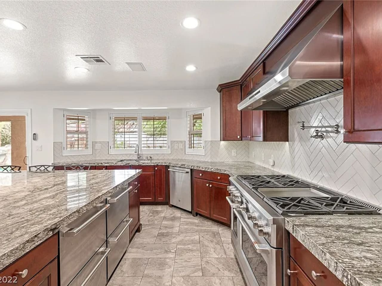 Experience true luxury in this expansive 9-bedroom, 8-bath estate located just minutes from the Las Vegas Strip. With 14 beds and 8,400 sq ft of stylish living space, it’s perfect for large families, groups of friends, or corporate stays. Enjoy a p...rivate pool and spa, a pool table, and upscale design throughout. Tucked away in a quiet, exclusive setting, this property offers comfort, privacy, and the ultimate Vegas retreat for unforgettable memories. **Ultimate Mediterranean Getaway – 9BR Estate with Lagoon Pool, Hidden Room & Casitas** Welcome to your dream escape: an elegant 8,399 sq ft Mediterranean-style villa set on over an acre of lush grounds. This fully remodeled estate is designed for memorable group stays, featuring 9 bedrooms, 9 bathrooms, and outstanding amenities both inside and out. --- **Outdoor Retreat** Enjoy your own resort-style oasis with a lagoon-style grotto pool, waterslide, spa, and expansive lounge areas. Fire up the BBQ and dine alfresco under the stars in total privacy. --- **Hidden Surprise** A charming secret bedroom is tucked behind a bookshelf—just pull the right book to reveal this unique hideaway. --- **Estate Highlights** • Two-story main home with elegant finishes • Two private guest casitas for extra space and privacy • Three-car garage and multiple indoor/outdoor lounge spaces --- **Comfortable & Private Sleeping Arrangements** • 9 well-appointed bedrooms with premium linens • 9 modern, spa-inspired bathrooms • Casita 1: 2BR, 2BA, full kitchen, and living room • Casita 2: 1BR, 2BA cozy retreat --- **Gourmet Kitchen** Cook for the whole group in the spacious kitchen featuring granite counters, high-end appliances, a wine fridge, coffee station, and full cookware essentials. --- **Entertainment for Everyone** • Home theater with projector and plush seating • Pool table, ping pong, and games for all ages • Cocktail mixing equipment for at-home happy hours --- **Work & Wellness** • Dedicated office space for remote work • Private fitness room with essential equipment --- **Bedroom & Bathroom Breakdown** *Main House – Upper Level (5BR, 4BA)* • Bedroom 1: King bed + en-suite • Bedroom 2: 2 Queen beds + en-suite • Bedroom 3: King bed + en-suite • Bedroom 4: Hidden Queen bed behind bookshelf • Bedroom 5: 2 Queen beds + en-suite *Casita #1 (2BR, 2BA)* • Bedroom 6: Queen + en-suite • Bedroom 7: Queen + en-suite *Casita #2 (1BR, 2BA)* • Bedroom 8: Queen + en-suite *Main House – Lower Level (1BR, 1BA)* • Bedroom 9: 3 Queen beds + 1 Twin • Bathroom: Near gym & living area --- **Included Essentials** • Fully stocked kitchen: fridge, stove, oven, microwave, blender, toaster, coffee makers, cookware, and dining sets • Starter supplies: paper towels, trash bags, soap, detergent, and shampoo • Towels and linens: bath towels, pool towels, and clean bedding for all guests • Laundry area: washer, dryer, ironing board, and iron --- **Perfect for All Occasions** Whether you're planning a family reunion, corporate retreat, or a group vacation, this villa offers luxury, space, and amenities designed to impress. --- **Frequently Asked Questions** **Check-In/Out** • Check-in: After 4:00 PM • Check-out: By 11:00 AM **Keyless Entry** No need to meet anyone—personalized access codes make arrival easy and convenient. **Cleaning** Departure cleaning is included. Mid-stay cleanings available for an additional fee. **Supplies & Amenities** • Fully furnished with well-equipped kitchen • Bath & pool towels, linens, toiletries, and kitchen basics included • No food, oils, or spices provided due to hygiene policies **Shipping Packages** We do not recommend shipping to the property due to staff access and security concerns. **Music Policy** • No outdoor music allowed per city regulations • Indoor music permitted with doors and windows closed • Quiet hours begin at 9:00 PM **Pets** • Pet-friendly: Up to 2 pets allowed with a \$250 fee • Please notify us in advance if you’re bringing pets --- **Important Notes** • No parties, weddings, or smoking indoors • Pool/spa heat available with 72 hours’ notice and additional fee • Decorative fireplaces—non-functional • Property accommodates up to 27 guests (fees may apply over 14)