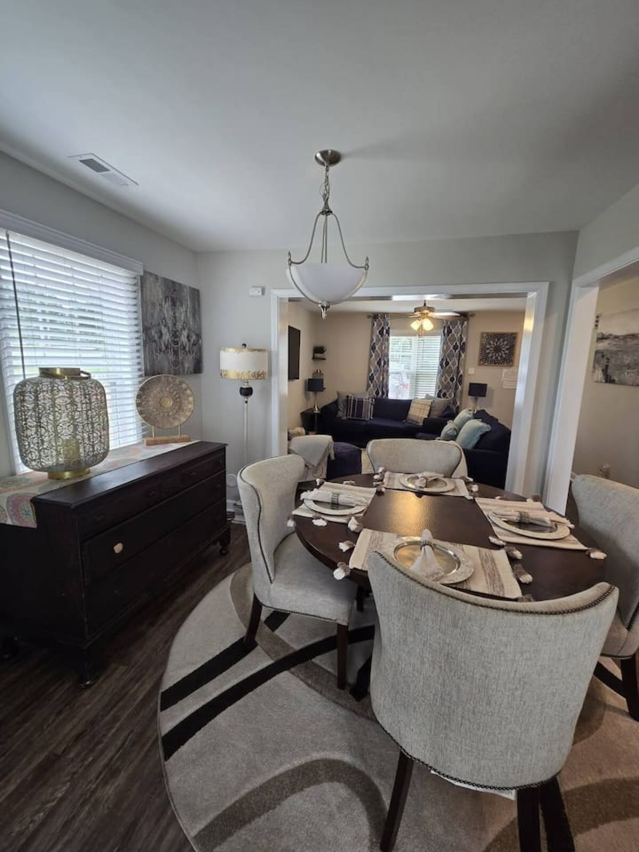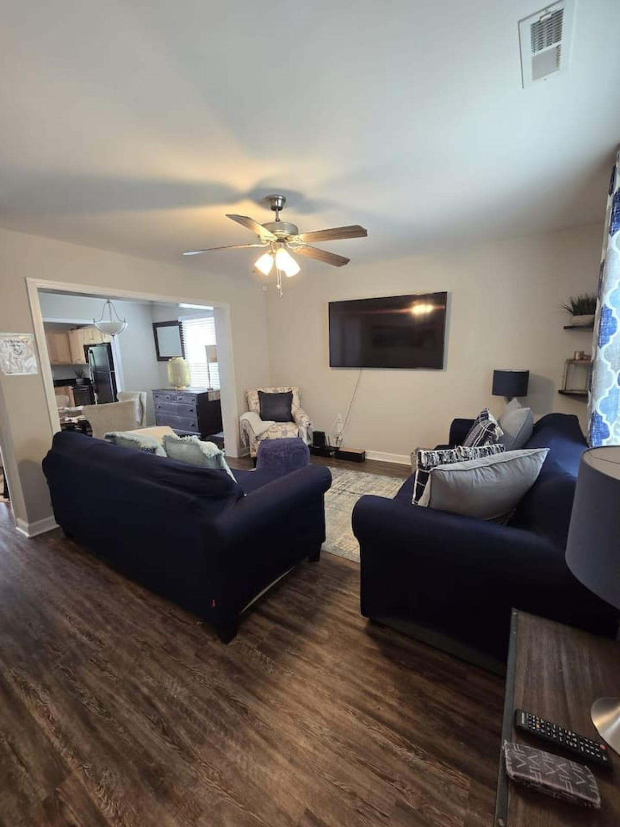 Elegant and family-friendly, this centrally located two-story duplex offers the perfect mix of comfort and convenience. With three cozy bedrooms upstairs and a sleeper sofa in the living room, it easily accommodates families or groups. The fully equi...pped kitchen and stylish dining area make meals at home a pleasure. Take advantage of special discounts for early bookings and extended stays, ensuring a memorable and budget-friendly vacation. 🏡 Home Layout This spacious two-story duplex unit (1,200 sq ft) offers comfort and convenience, located on the right side of the property. 🛏️ Sleeping Arrangements Three bedrooms upstairs: 1 King bed and 2 Queen beds Living room with a Queen pull-out sofa for additional guests Enjoy entertainment on four mounted 32-inch TVs throughout the home 🛁 Bathrooms Two full bathrooms, thoughtfully designed with modern finishes and stocked with essentials to keep you refreshed from morning to night. To help protect the home from potential damage or parties, we kindly ask guests to choose between a fully refundable $250 deposit or a $59 damage protection policy. Thank you for helping us keep the space safe and enjoyable for everyone! We are extremely excited for the chance to host you and your group!