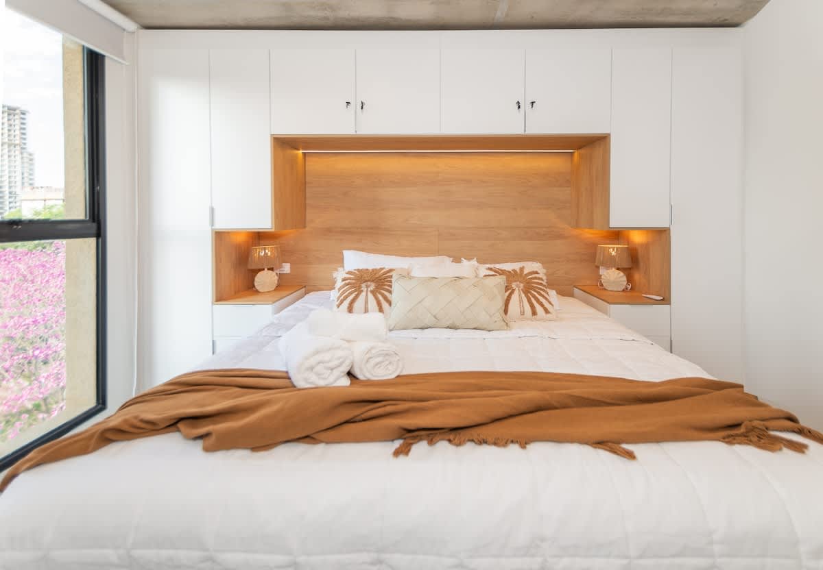 69m w/ private balcony * 3 mins walking distance to cafes, dining and shopping center * Fully equipped for a comfortable stay * 1 ensuite bedroom (King Bed) + 1 double bedroom * Dedicated workspace * 1 smart TVs * Onsite washer * 24/7 doorman * Par...king for 1 car * 200 Mbps Wi-Fi Amenities * Pool * 2 BBQ / Event Room (1 outdoor and 1 air conditioned) * Gym * Movie Theater * Workspace / Coworking notes access interactionWithGuests