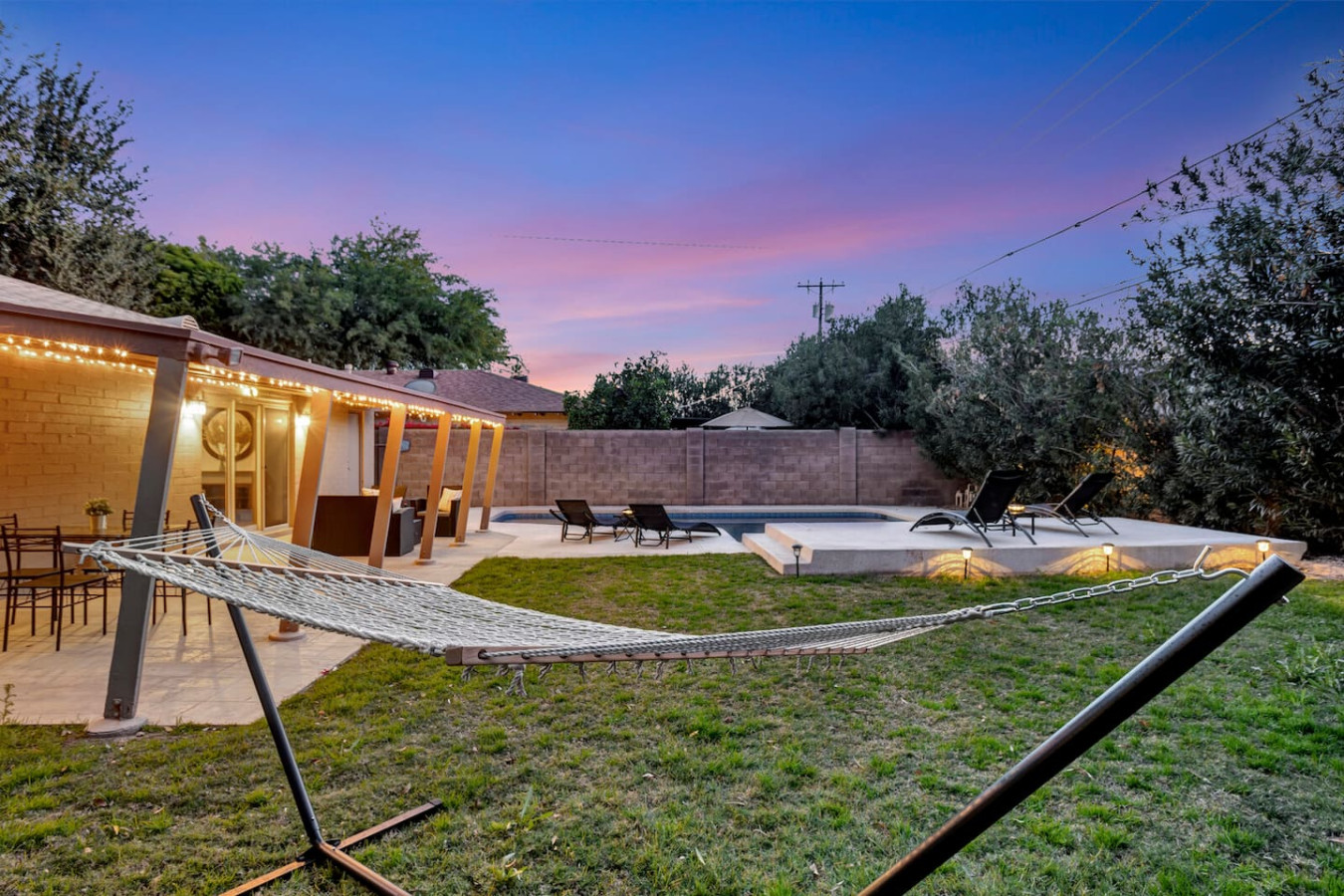 Experience Scottsdale in this home that has it all! This home is great for groups and families - with 6 beds and 4 bedrooms, there's plenty of space for everyone. Plus, there's a pool, large living area, beautiful dining area, and fantastic backyard.... There is one King bed and 5 Queen beds in this home. All are luxurious and super comfortable! You'll never be far from the action in this designer home - in fact, you'll be minutes from Old Town and all of Scottsdale's best dining and shops! This beautiful South Scottsdale home is the perfect launching pad to experience all that the city has to offer. Whether you are travelling to visit Old Town, looking to hike with your friends, or travelling with friends to golf, this home will work for your group. All the furniture is brand-new and modern. The living room has a Netflix Equipped Smart TV and a huge sectional. The kitchen and dining area is set up with everything that you'll need for cooking. There is lightening fast Wi-Fi, complimentary coffee, and all the essentials that you'll need for a great stay. The outdoor area is truly special. There's a large pool and patio, lawn chairs, and a comfy hammock. There are beautiful trees and foliage around the property to give you extra privacy! This is truly one of the best spots in Scottsdale! Each bedroom has a luxurious bed with 600 thread count sheets and luxurious pillows. There's a King bed in the master bedroom, plus an additional 5 Queen Beds! It's the perfect place for groups visiting the city! There's a driveway that fits up to two cars, and free street parking! The best place to reach me is the Airbnb app message thread. We are available anytime you need during your stay :) Early Check-In Fees Check-in time is from 4:00pm-1:00am. Additional fees may apply depending on your requested check-in time between 12:00 p.m. and 4:00 p.m. A full nightly rate will apply for any check-in before 12:00 p.m. Late Check-Out Fees Check-out time is 10:00 a.m. Additional fees may apply depending on your requested check-out time between 10am and 1pm. A full nightly rate will apply for any check-out after 1:00 p.m. All early check-in and late check-out requests must be approved in advance and confirmed in writing by our team, and are subject to availability. Quiet hours are between 10PM and 8AM in respect to our neighbors. Use of the pool and hot tub is at guests’ own risk. By booking and using these amenities, guests acknowledge and accept all responsibility for their safety and the safety of their party. Children must be supervised at all times. Smoking is strictly prohibited inside the property. A $500 fine will be imposed if smoking is confirmed or if lingering smoke odors are detected. For Your Safety & Peace of Mind To help keep our home and all guests safe, we use a secure identity verification service called Truvi. It’s a quick, one-time process that helps ensure everyone who stays with us is verified—protecting you, your reservation, and the property. By booking this reservation, you consent to receive calls and/or text messages from us and our third-party messaging and calling service regarding your stay, including check-in details, property access, and time-sensitive matters. TPT: 21605086 City of Scottsdale License Number: 2041463