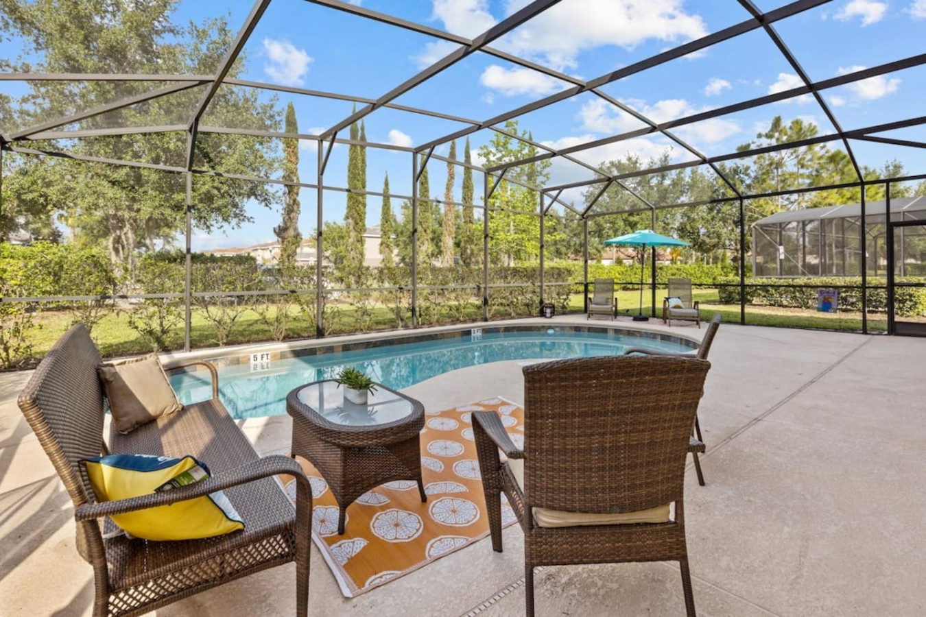 Luxury Single Family Home at Champions Gate, 5 bedrooms & 5 bathrooms. 2 bedrooms downstairs, equipped kitchen, screened Private Pool & Spa + Game Room at the garage with a Pool table. Private parking. Newly furnished & decorated. Fully Equipped, Was...her & Dryer. Internet & cable included. Close to Disney, Restaurant & Shopping centers. Clubhouse Resort with amenities included, two pools including a lazy river, restaurant, gym, business center and more